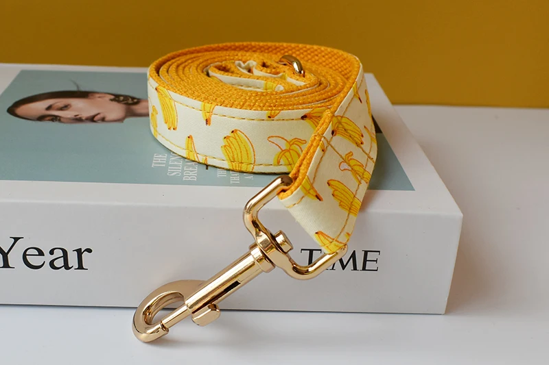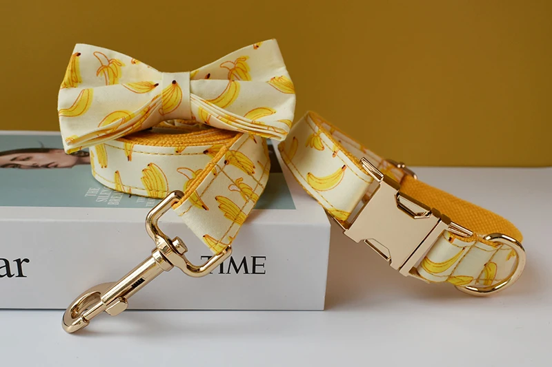 Free Engrave Personalized Banana Design Bow Dog Collar Leash Traction Rope For Small Big Adjustable Pet Straps Fruit 02