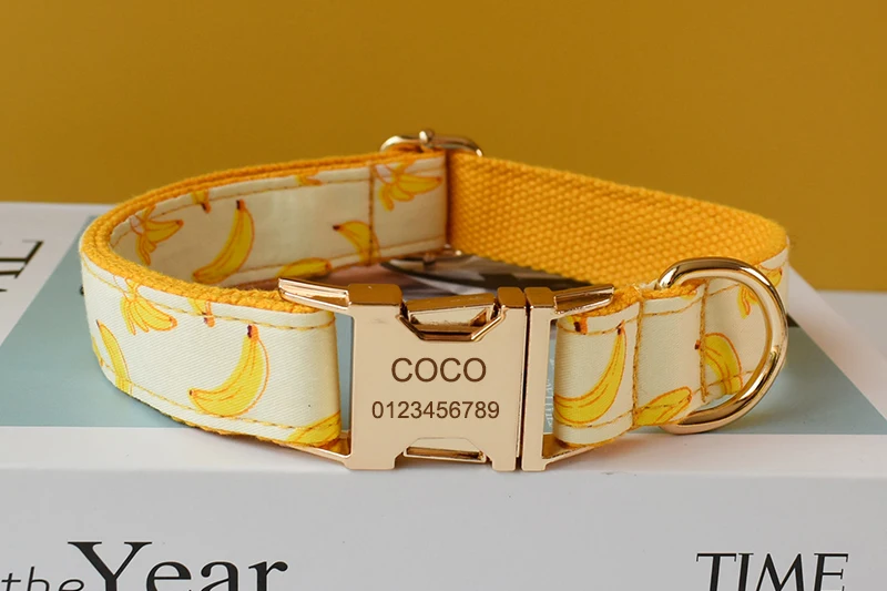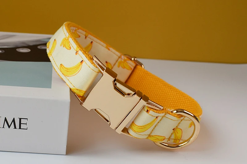 Free engrave nylon personalized banana design bow dog collar leash traction rope for small big dogs adjustable pet collar straps Fruit 02