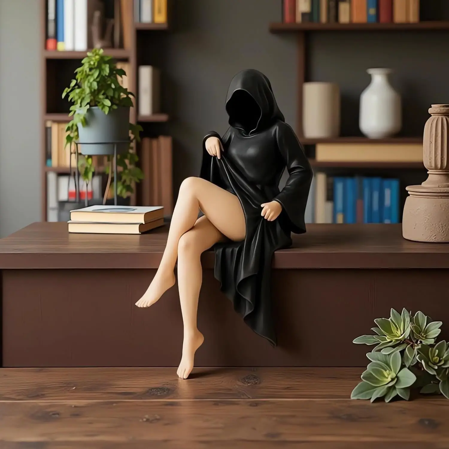 Gothic Statue Sitting Women Resin Ornaments Mysterious Bookshelf Sculptures Ghost Black Horror Robe Desktop Home Room Decor