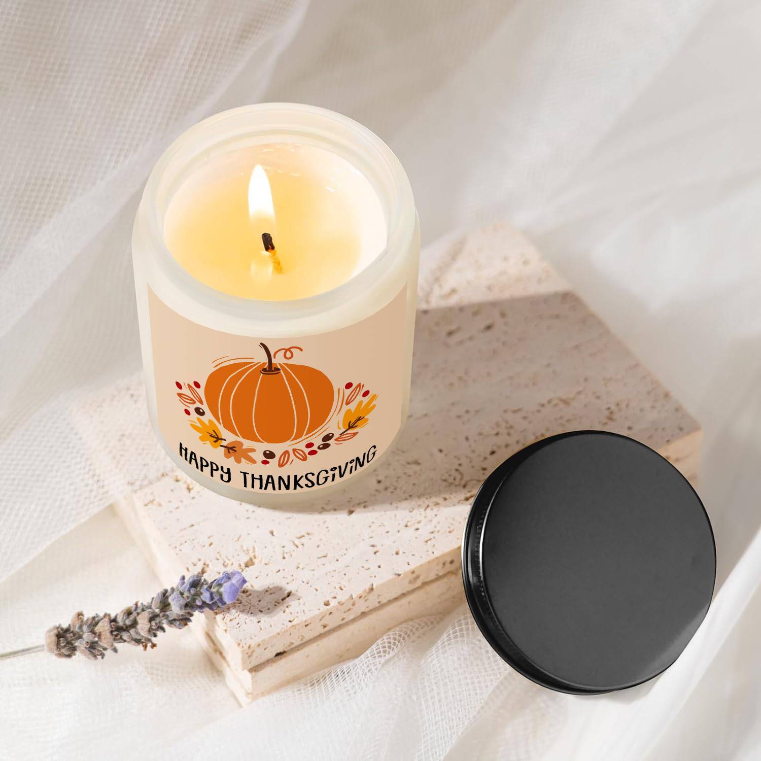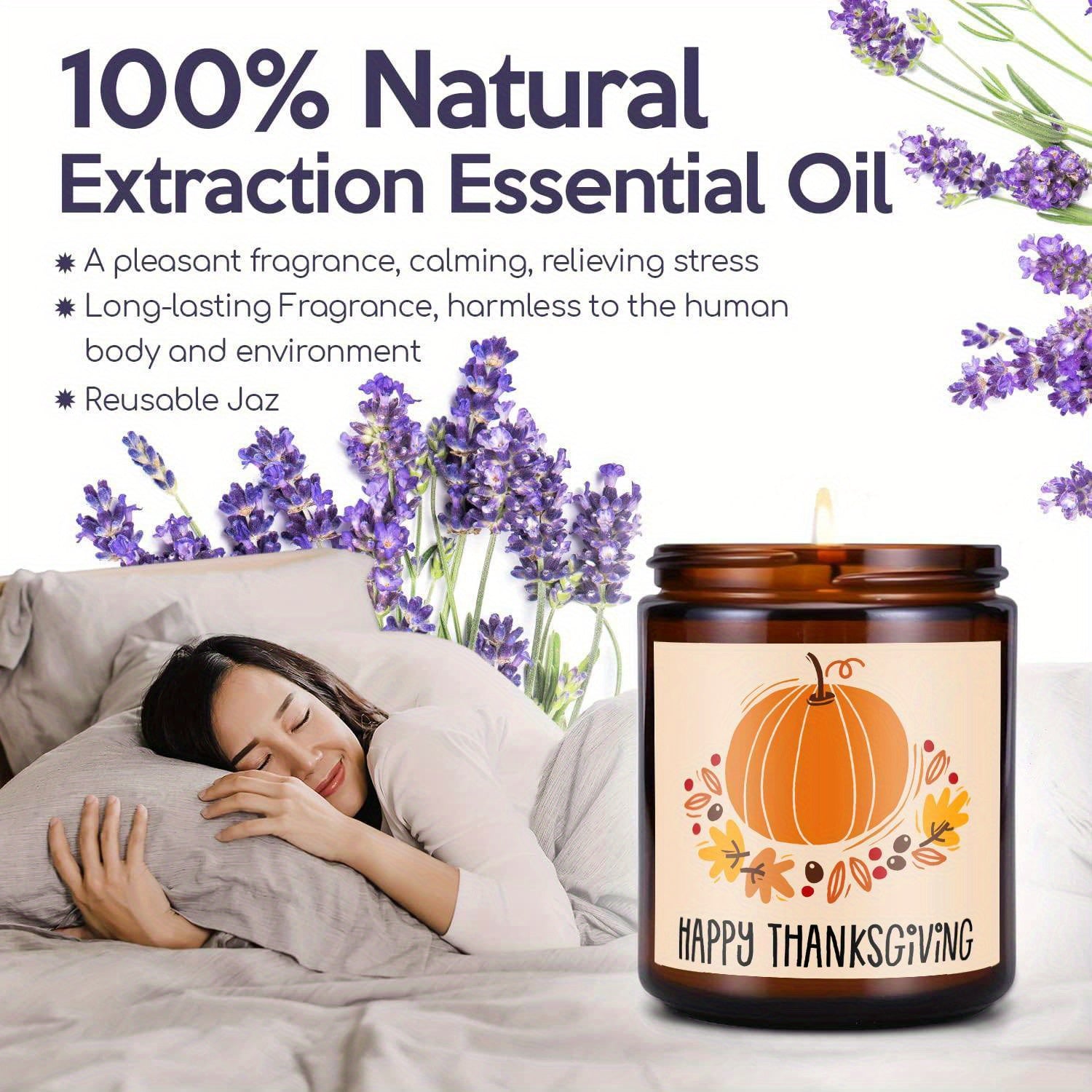 Happy Thanksgiving Day Scented Candle Fall Themed Autumn Orange Pumpkin Terracotta Burnt Rustic Farmhouse November Give Thanks Decoration Gift Idea for Home Women Woman Hostess Men Friends Her Mom Wife Grandma Cute Item