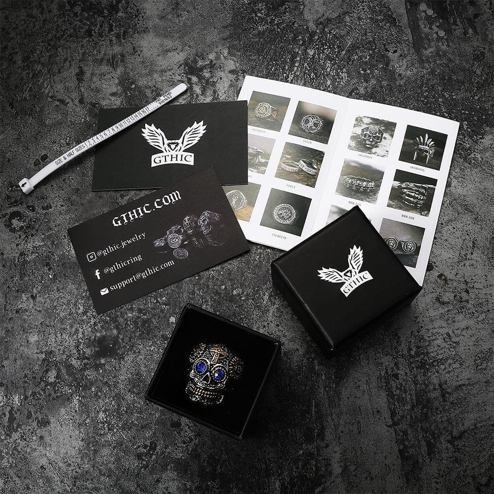 Produced from high-quality stainless steel, this stylish cross ring is thick and heavy yet exceptionally detailed with a cross on the forehead and extensive tribal floral carvings. It’s carefully crafted design is built to last and handle even the roughest times. With its menacing skull, blazing green eyes, and unique tribal detail, this ring makes a real statement when worn and is sure to grab desirable attention. Truly skull rings for men, truly men's stainless steel rings. Order yours today while you still can-you don’t want to miss out!