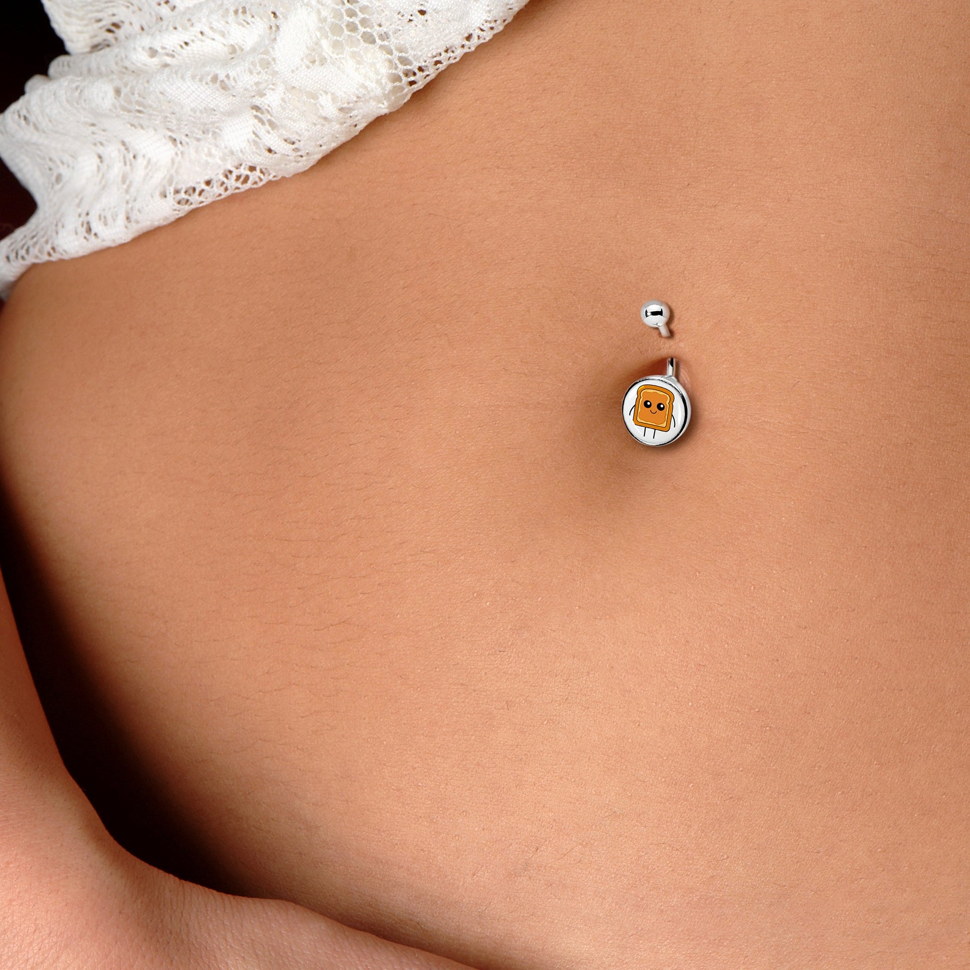 Some things are just made to go together, like the sweet sandwich halves on these 14 gauge navel rings. They are made with 7/16 inch durable 316L stainless steel curved barbells with 5mm top ball ends. They each feature one half of the same sandwich, both with sweetly wide eyed expressions. One is spread with peanut butter, the other with jelly for the perfect combo. Whether you want to share with a friend or keep them to yourself, these matching belly rings are sure to be a perfect pair. Sold as a set of two.