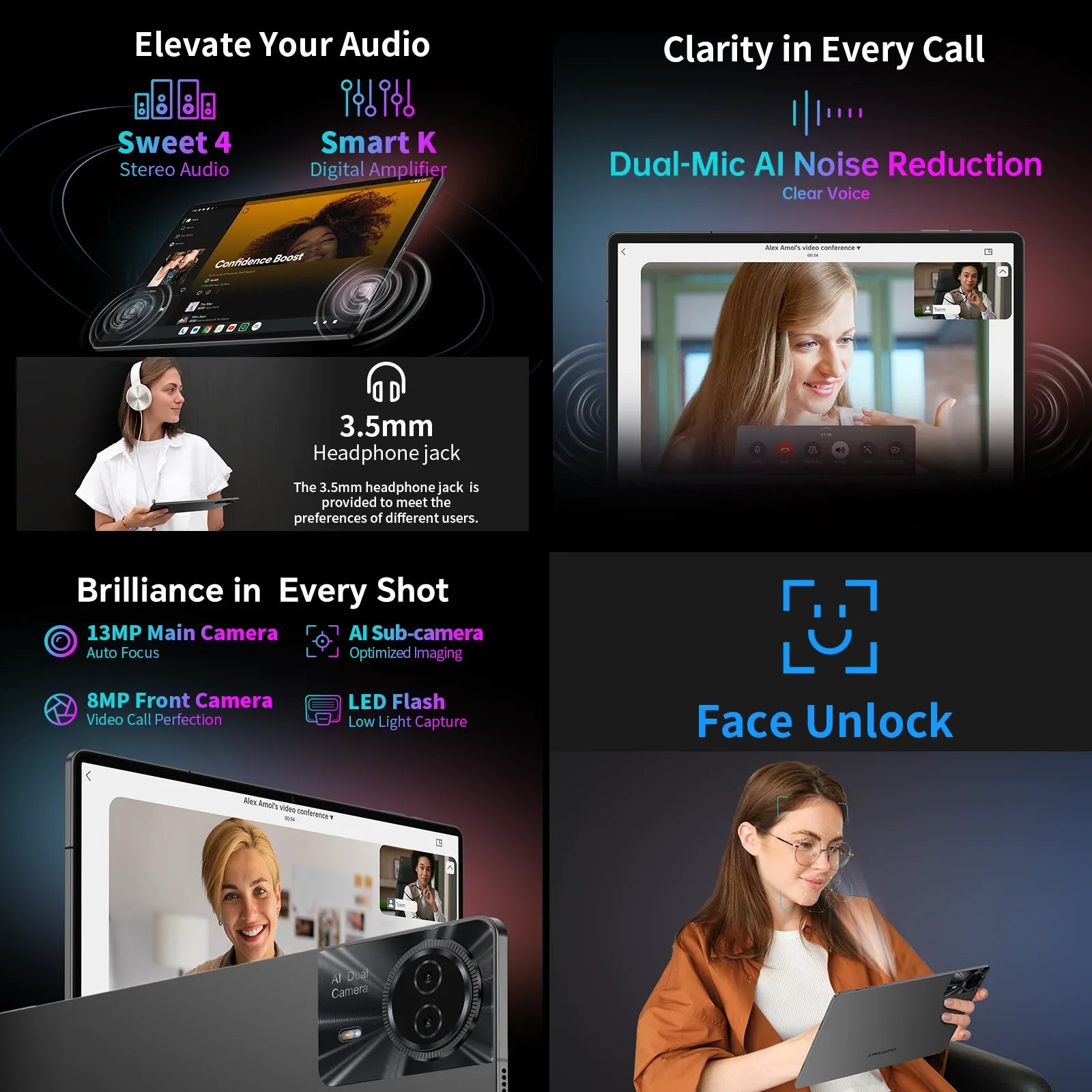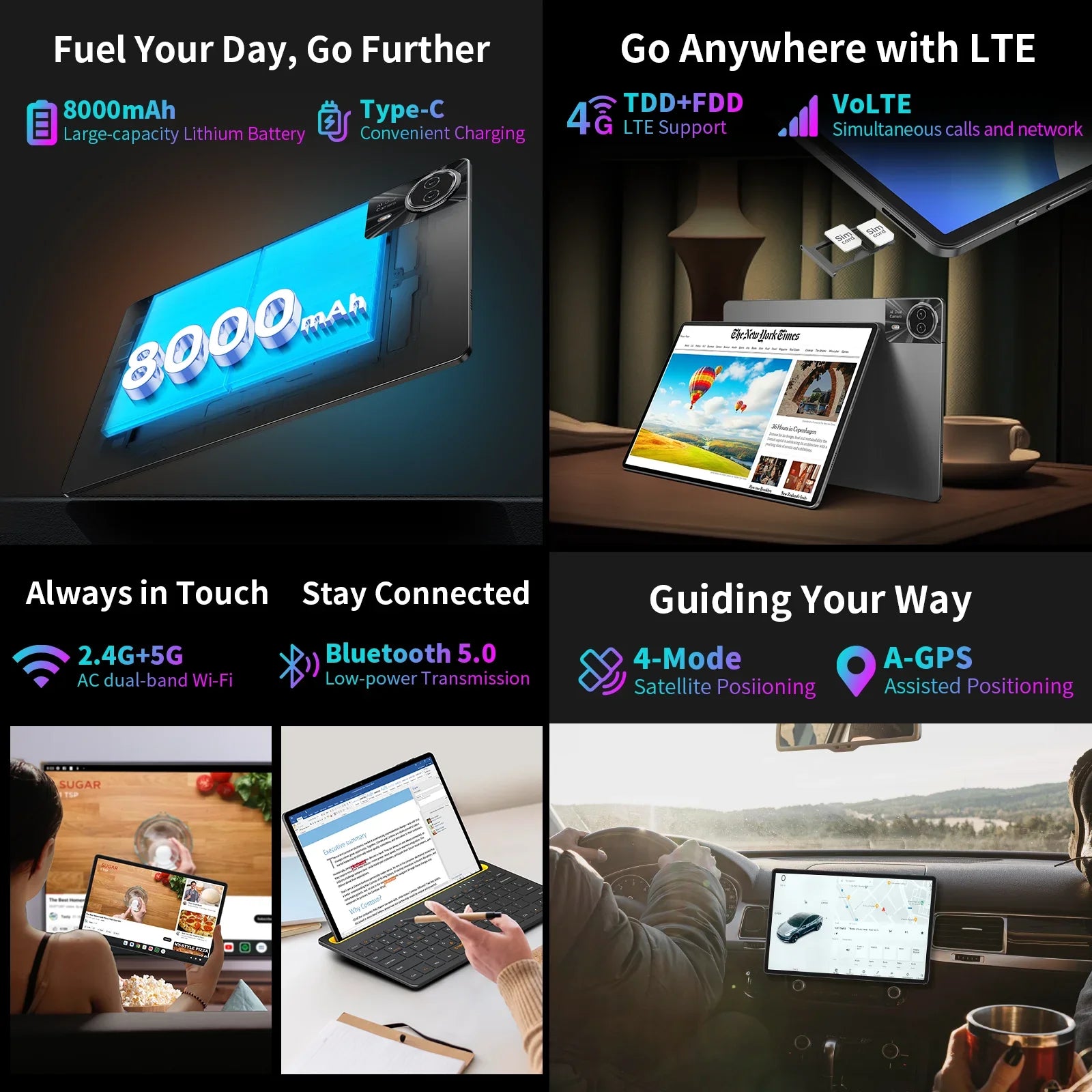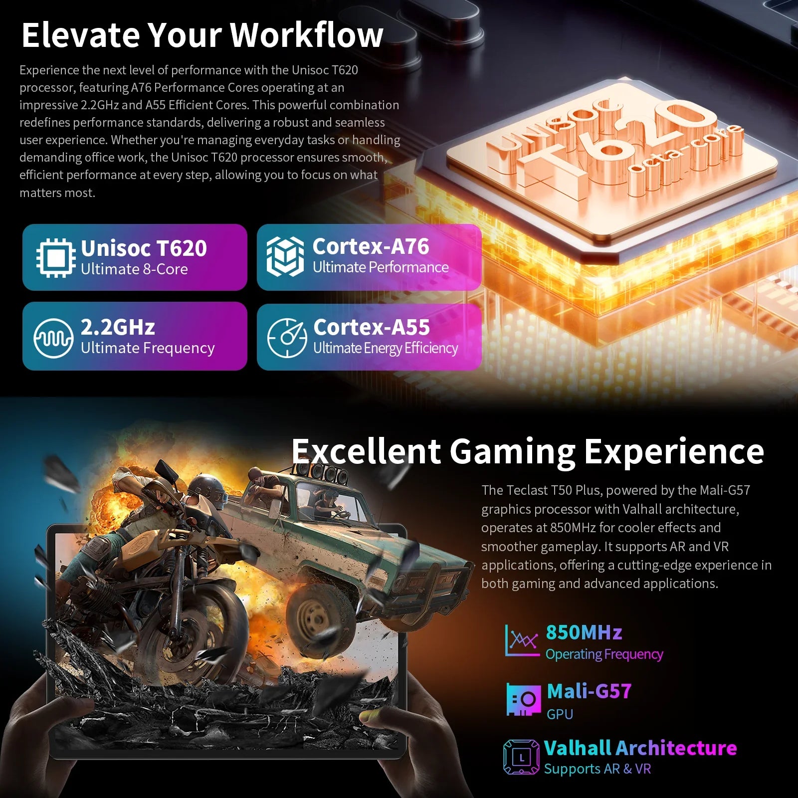 Teclast T50 Plus Tablet, 11 Inches, Unisoc T620, 8 Cores, (6Gb+10Gb)Max.16Gb Ram, 256Gb Rom, 4g Network, Dual Sim, Android 14, 8000Mah, 1920X1200 Ips, Wifi
