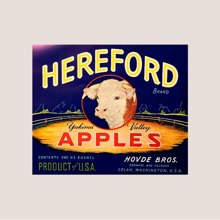 Vintage Hereford Apples Crate Label Brings 1930s Yakima Valley to Life