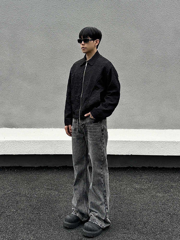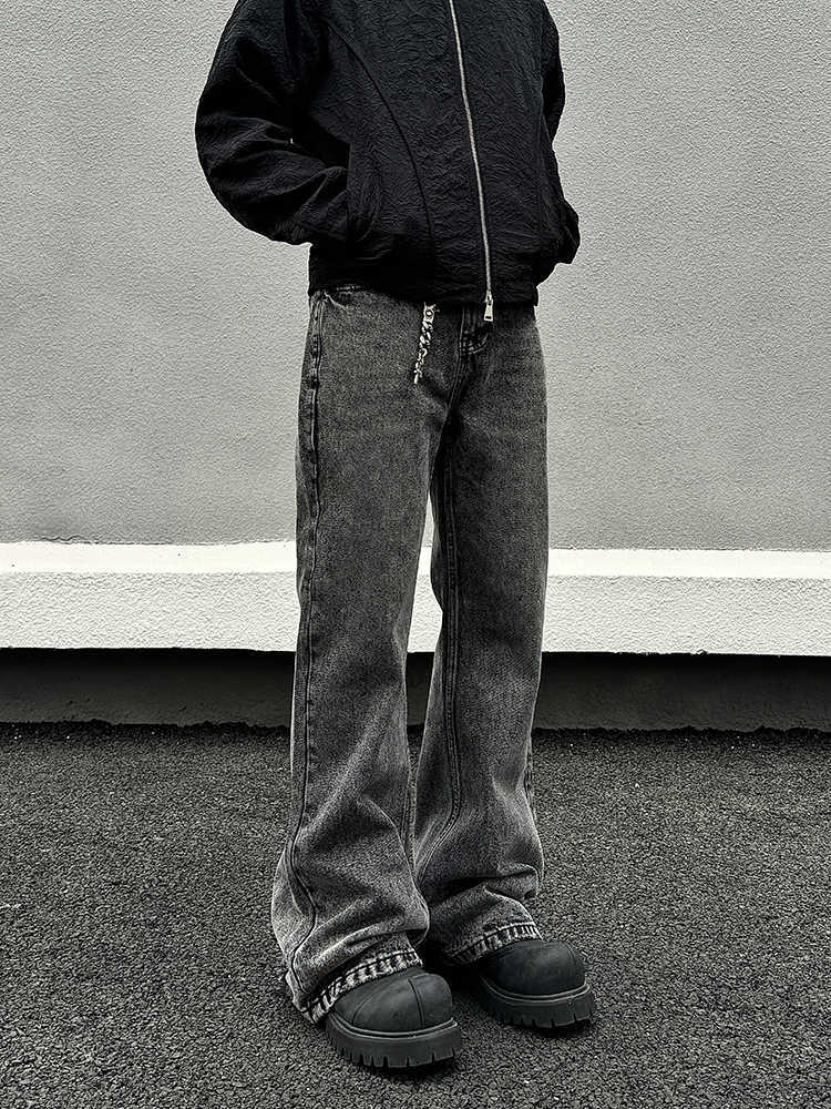 Washed Distressed Gray Skinny Jeans Men's Straight Pants