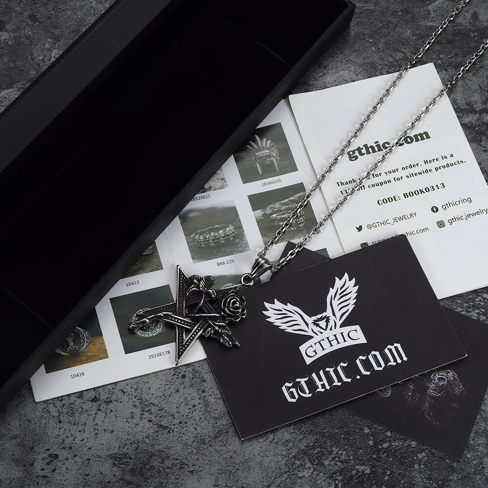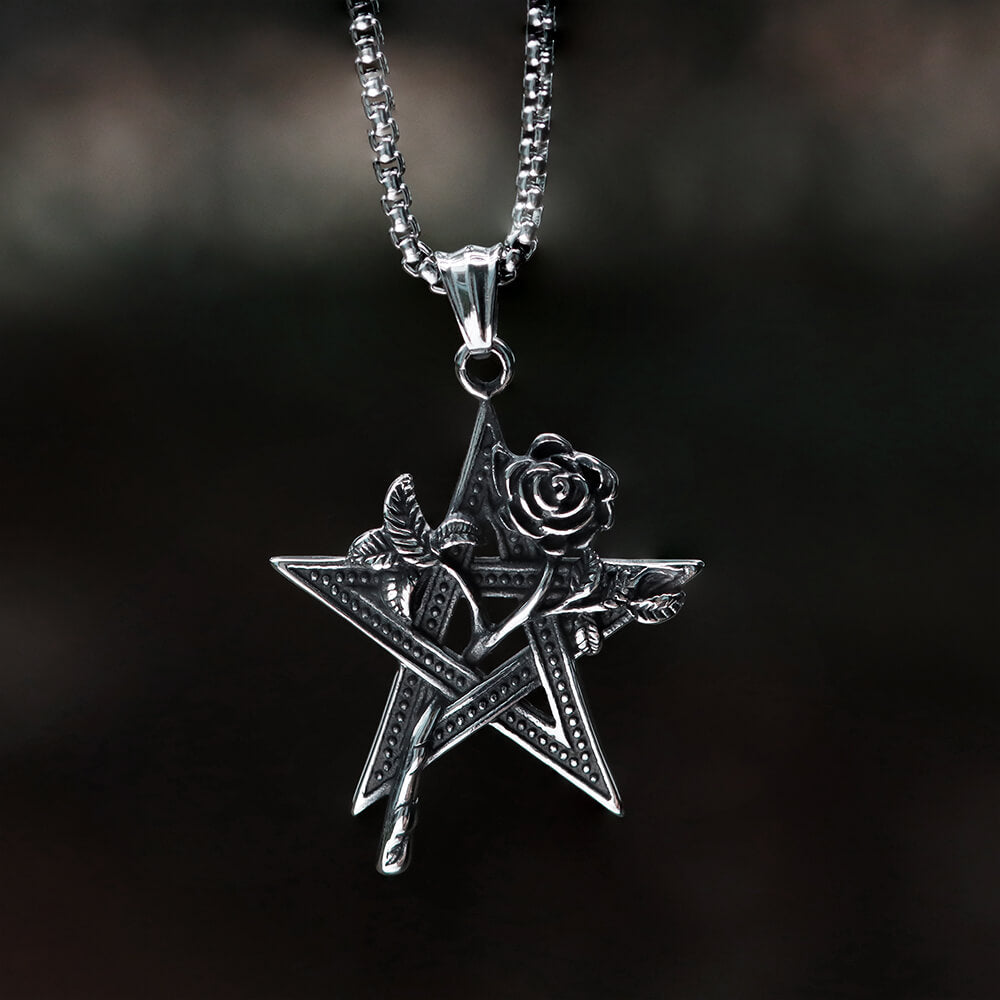 The five-pointed star has many different symbolic meanings. Among them, Christians once generally used a five-pointed star to represent the five wounds of Jesus. A rose blooms from the five-pointed star, showing romance and elegance.