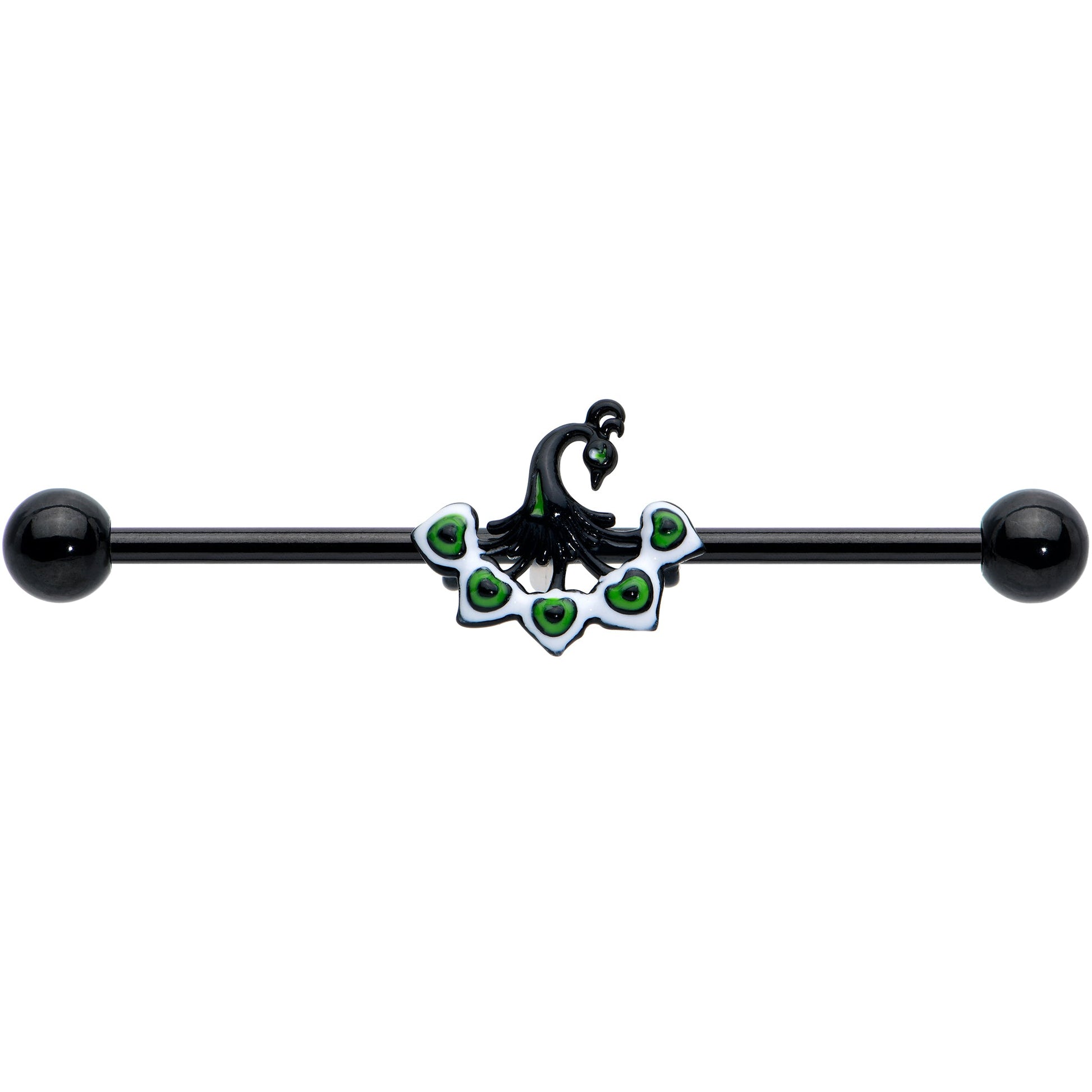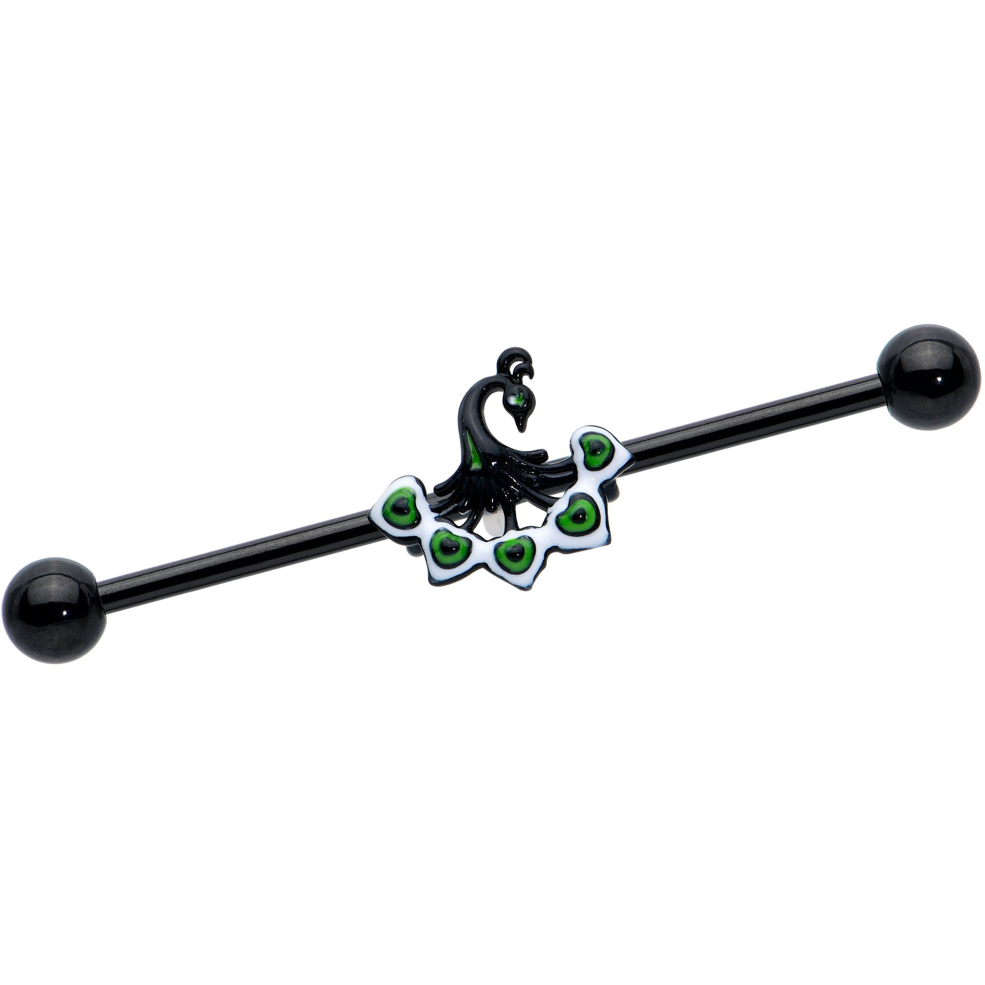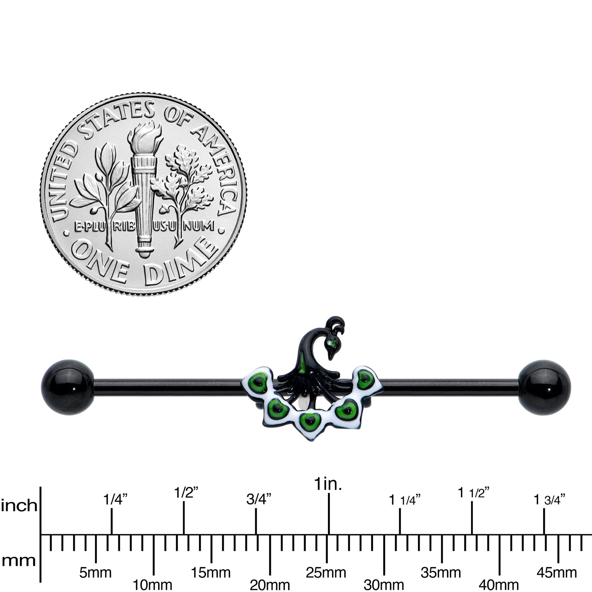 14 Gauge Black Green Pretty Peacock Industrial Barbell 38mm