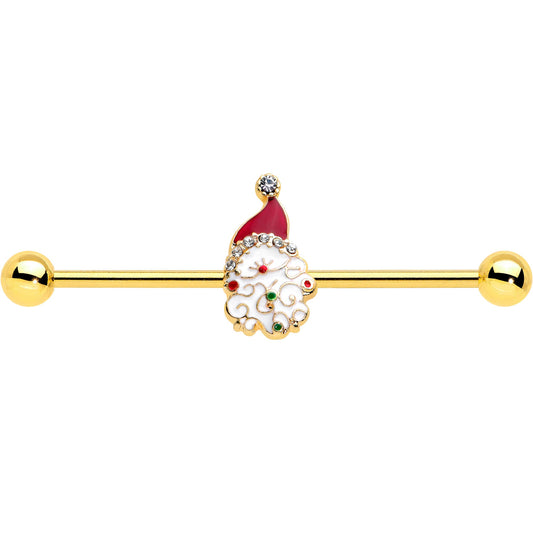 14G Clear Gem Gold Tone Decorated Santa Holiday Industrial Barbell 38mm