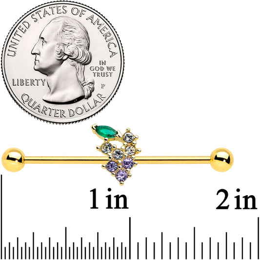 14G Clear CZ Gem Gold Tone Bunch Grapes Industrial Barbell 38mm