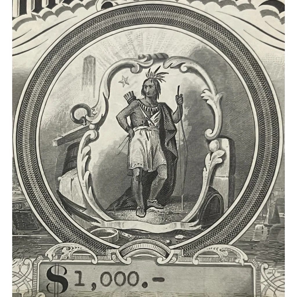 This antique stock certificate, measuring an impressive 12" x 8", is more than just a collectible - it's a piece of living history. The heavy, durable paper stock used in its creation has preserved its vibrant appearance, ensuring that it looks as striking today as it did decades ago. It's a testament to the quality and craftsmanship of a time when documents were created to last.