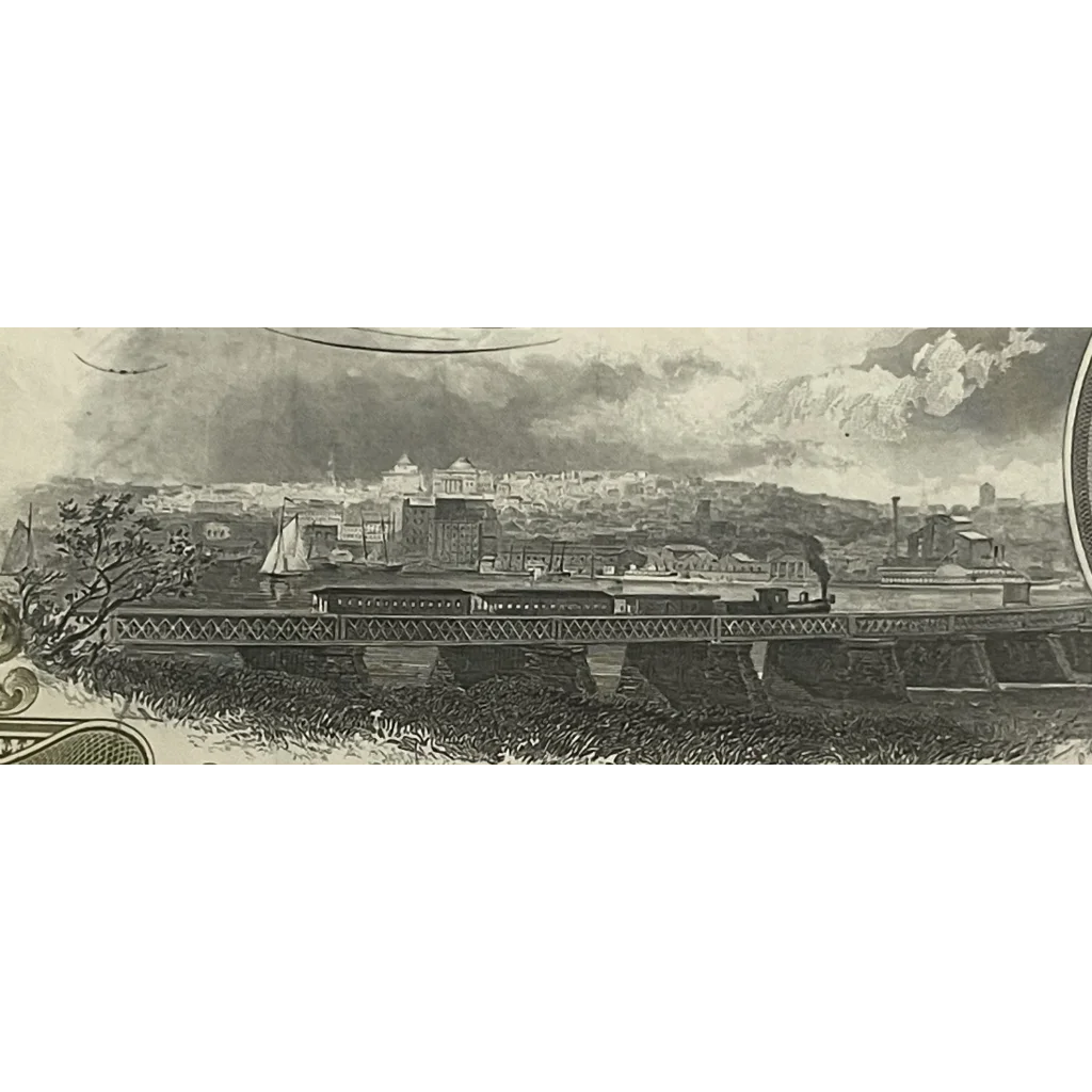 Handcrafted by skilled artisans during the golden age of American railroads, this stock certificate exemplifies the timeless craftsmanship that defined an era. The impeccable attention to detail on this beautifully aged piece is truly awe-inspiring, from the ornate border to the bold typography. It's not just a document; it's a work of art that demands attention and admiration.