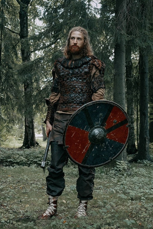 Viking larp armor with bass accents