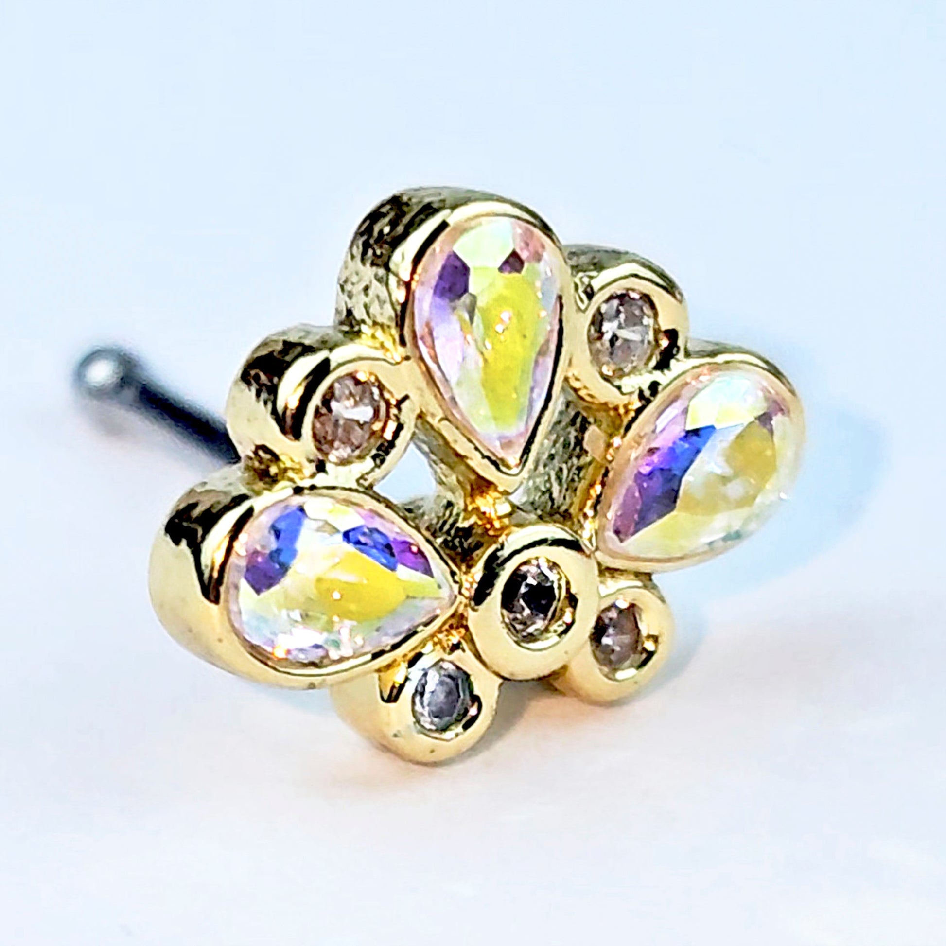 20G 1/4 Aurora Gem Golden Crown Deluxe Nose Bone