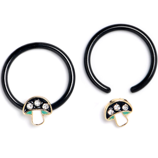 16G 3/8 Clear Gem Black Mushroom BCR Captive Ring Set of 4
