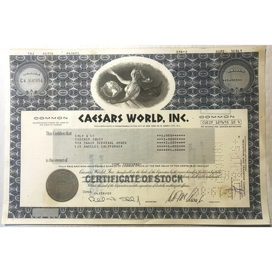 Rare 1980 Caesars World Casino Stock Certificate Unearthed