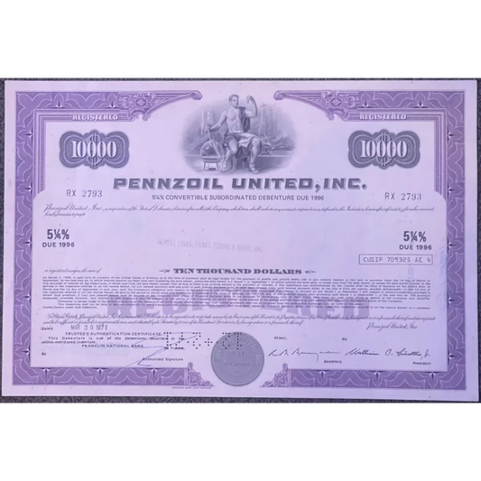 Rare Purple Pennzoil Stock Certificate Unearths American History