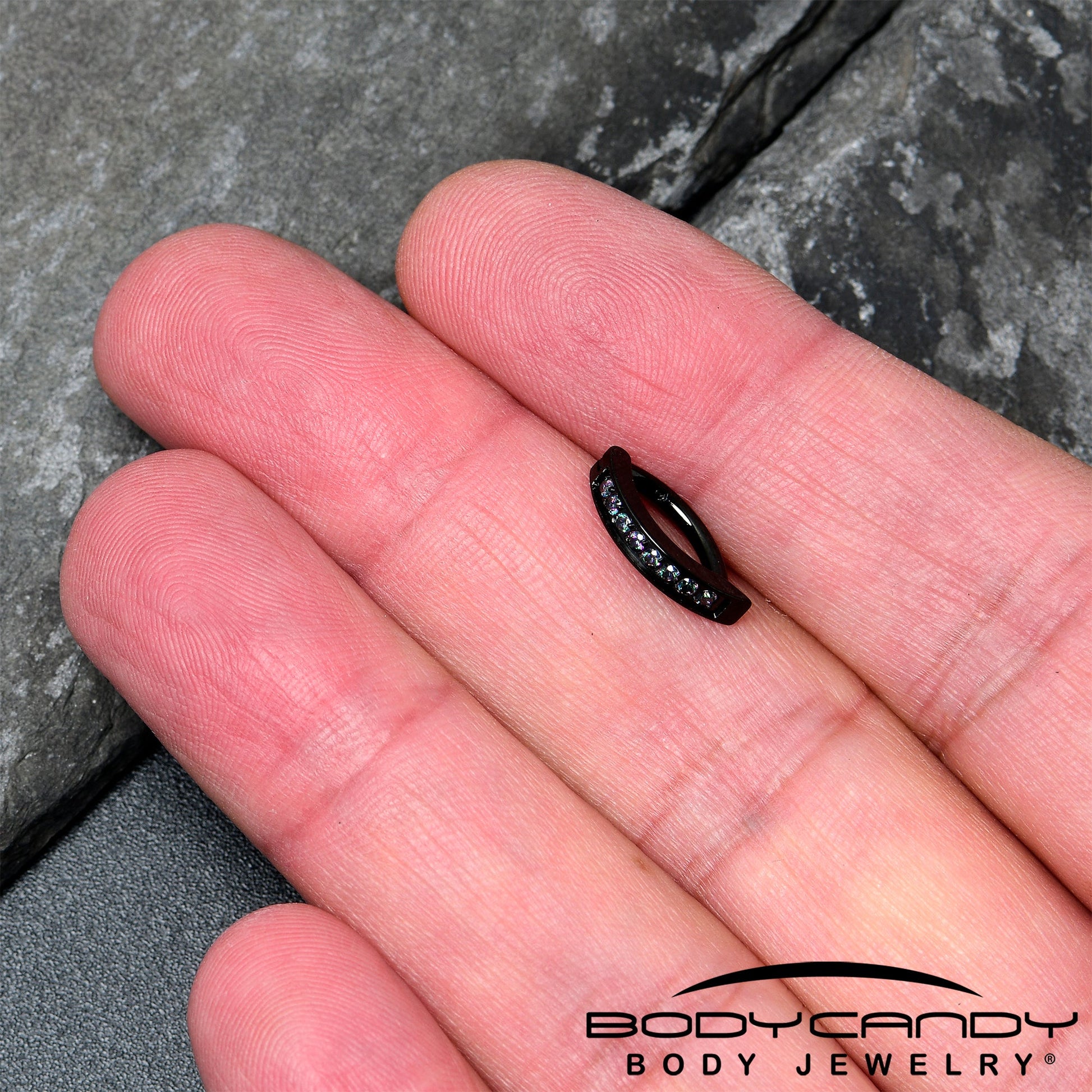 14G 3/8 Black Implant Grade Titanium CZ Paved Hinged Hoop Belly Ring
