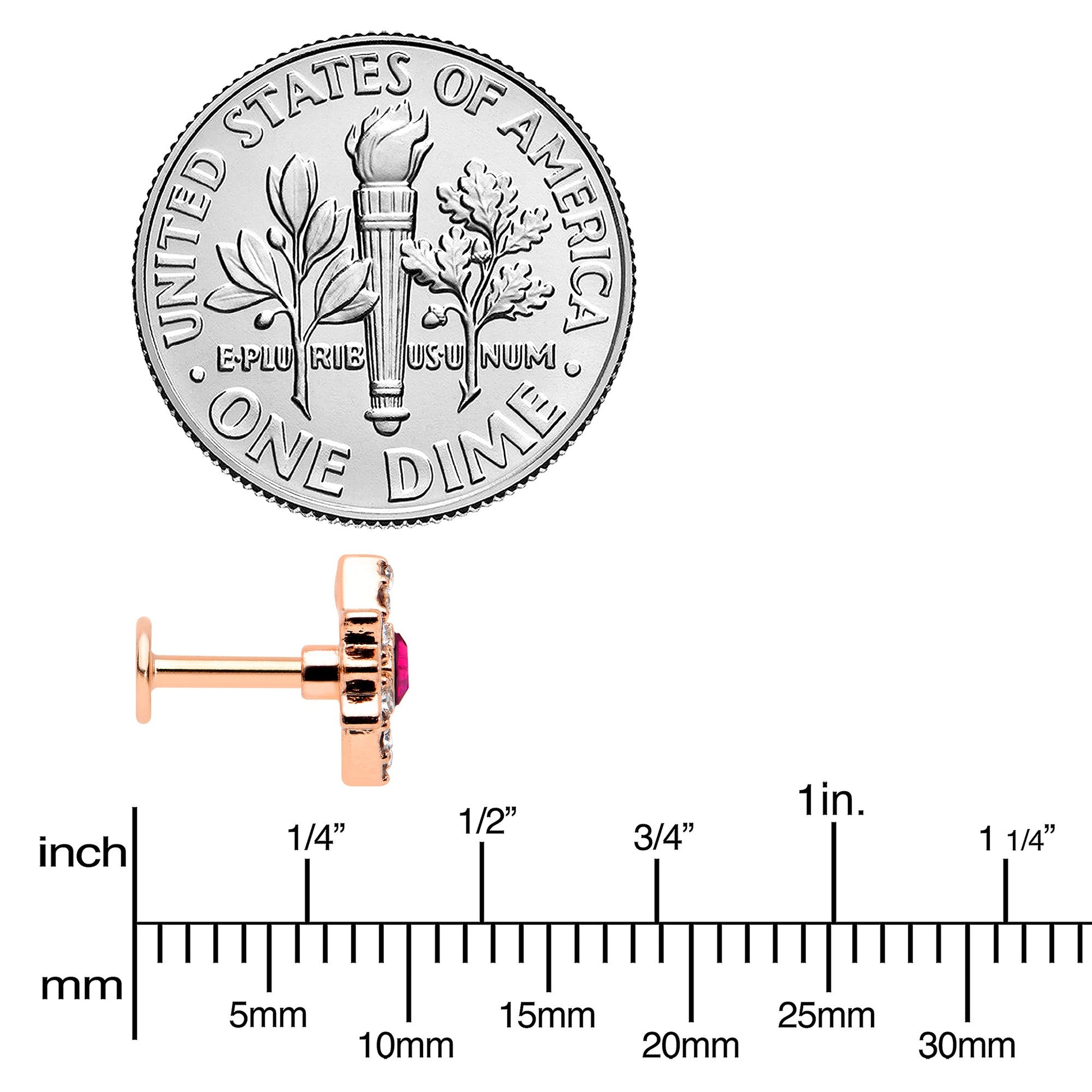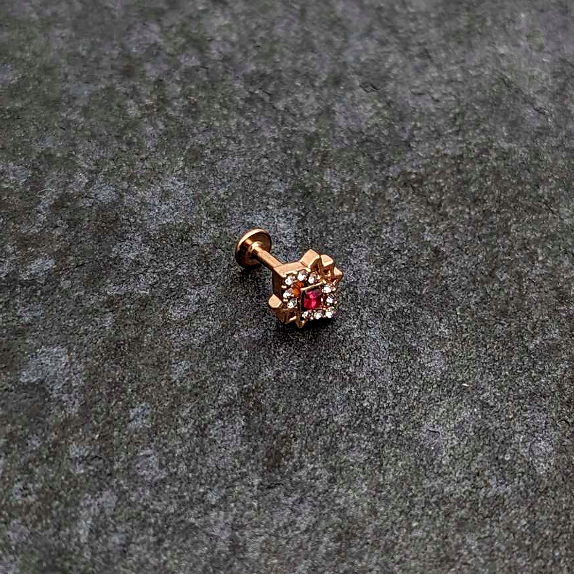 16 Gauge 1/4 Red Gem Rose Gold Tone Octogram Star Labret Monroe Tragus