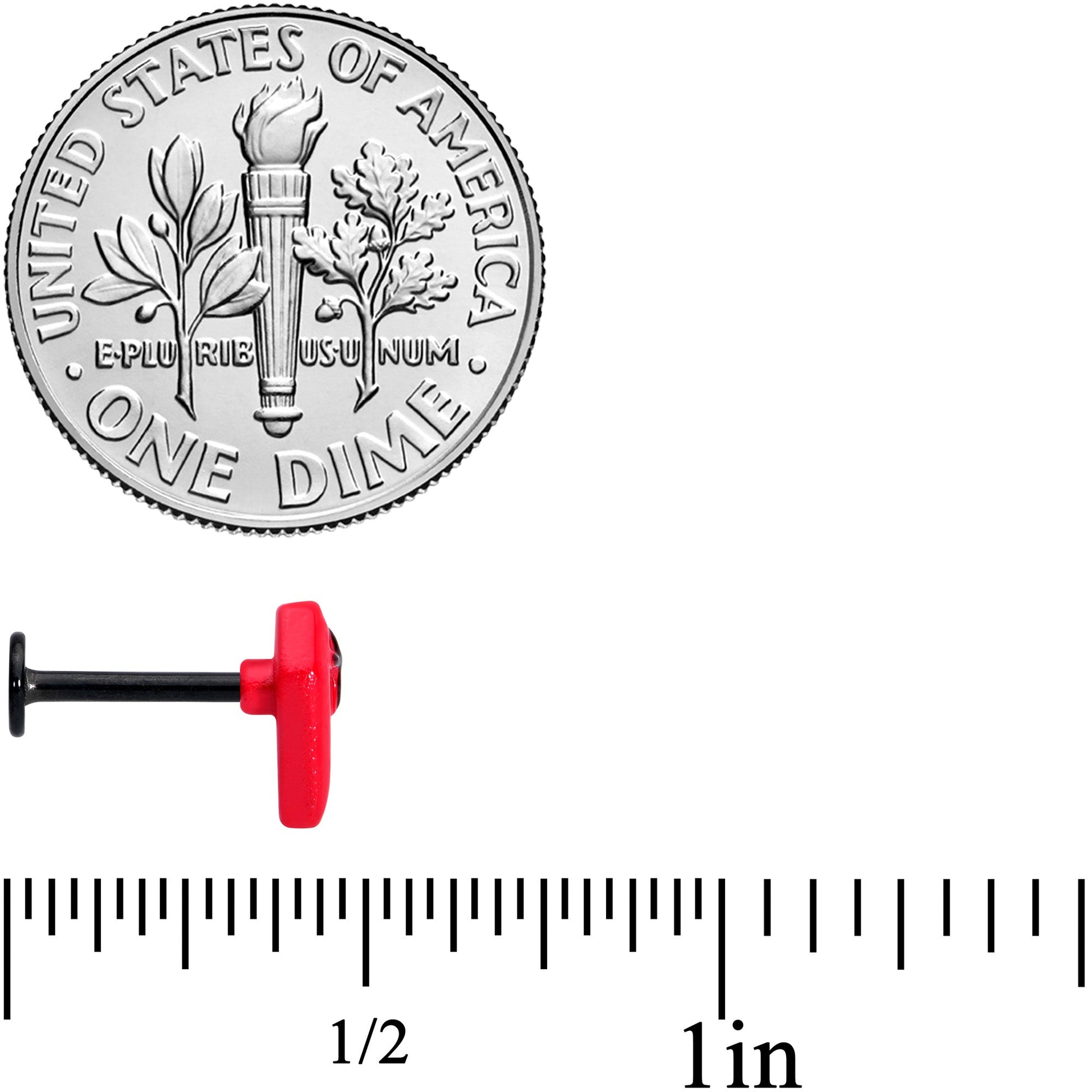 Deck out your cartilage piercing for Halloween! This 16 gauge lip ring is made with an 8mm black PVD over 316L surgical grade stainless steel straight barbell with a flat disc end. It features a red coffin charm! This tragus stud can be worn in multiple piercings including lip, monroe, tragus, helix, and some conch piercings.