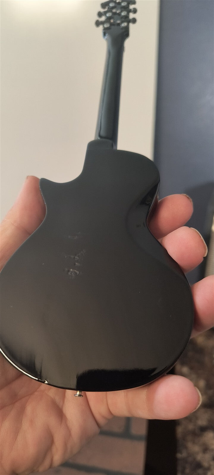 This miniature 1:4 scale replica model instrument can fit in the palm of your hand. It is approximately 10.5 inches in length and comes with an adjustable display stand and is packaged in a guitar gift box. Each guitar is individually handcrafted from solid woods, plastics, resins, etc. (depending on the guitar style) with metal tuning keys. Check out our listings for guitar hard cases and miniature amplifiers to complete your guitar set-up.