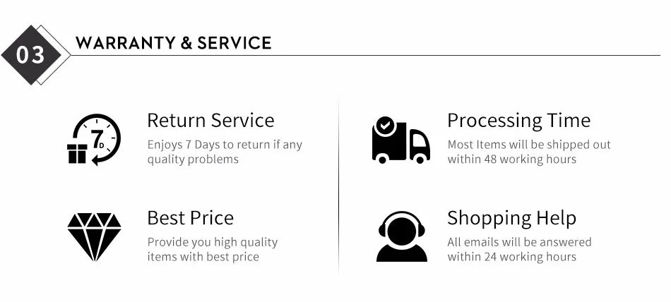 Please make sure your shipping address is correct before purchase.We will refund you if you return the item within 15 days after you received our items. The refund does not include the shipping cost and the return shipping cost is charged by the buyer.
