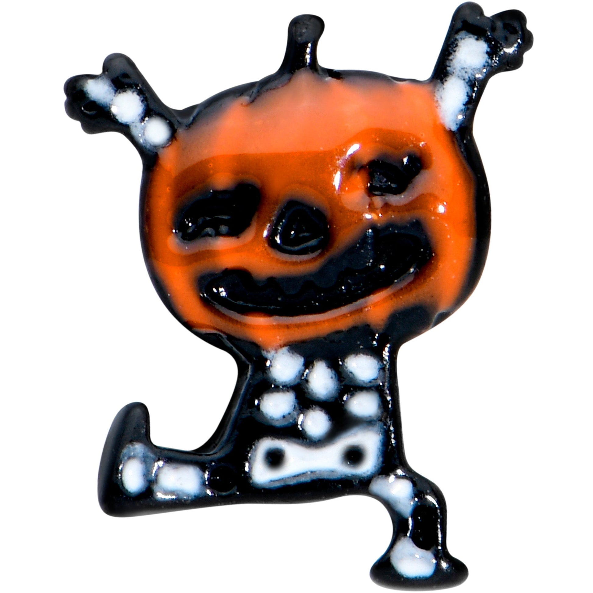 16 Gauge 1/4 Black Dancing Skeleton Pumpkin Halloween Cartilage Tragus
