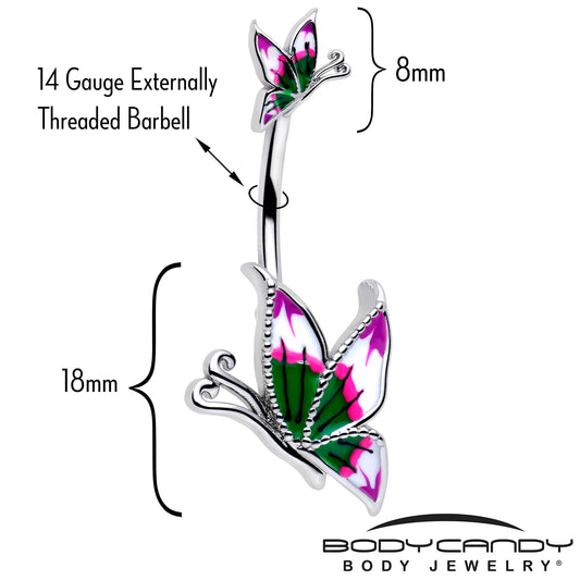 Double Gem Butterfly Wing Dangle Belly Ring by Onyx O
