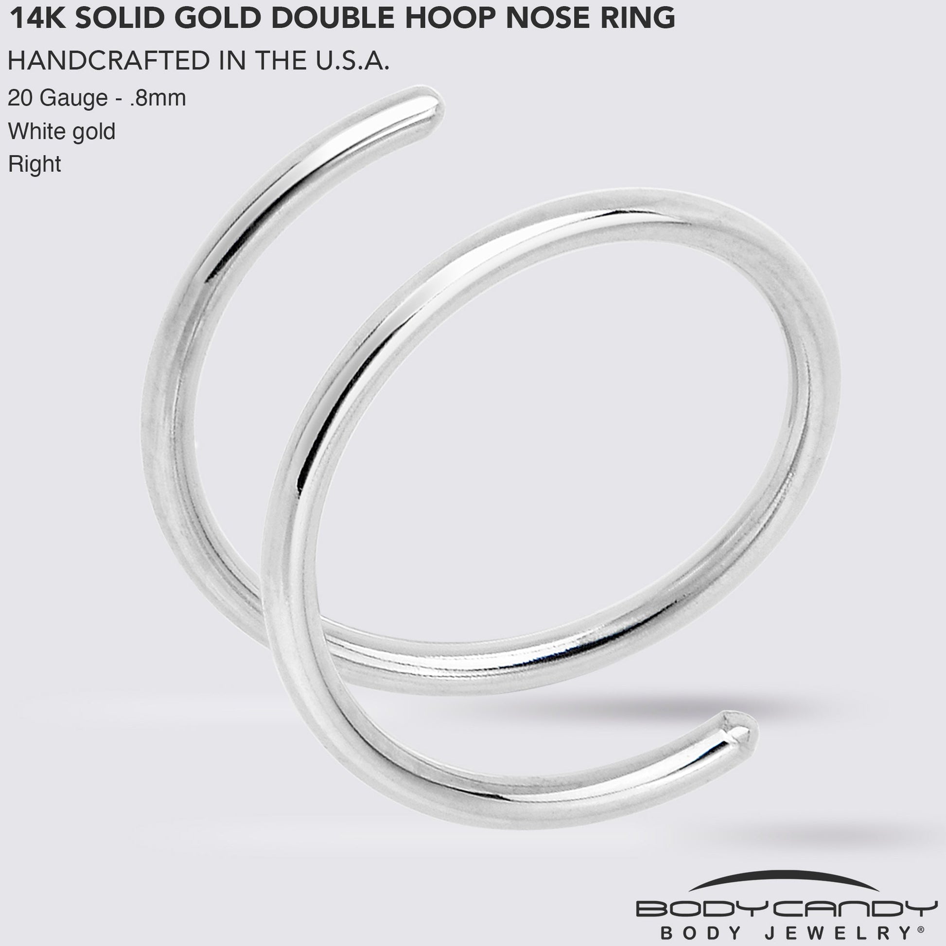 Solid 14k White Gold Double Hoop Spiral Nose Ring