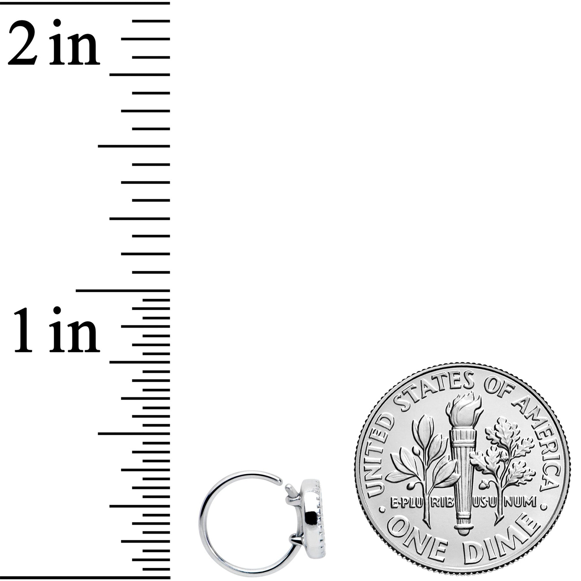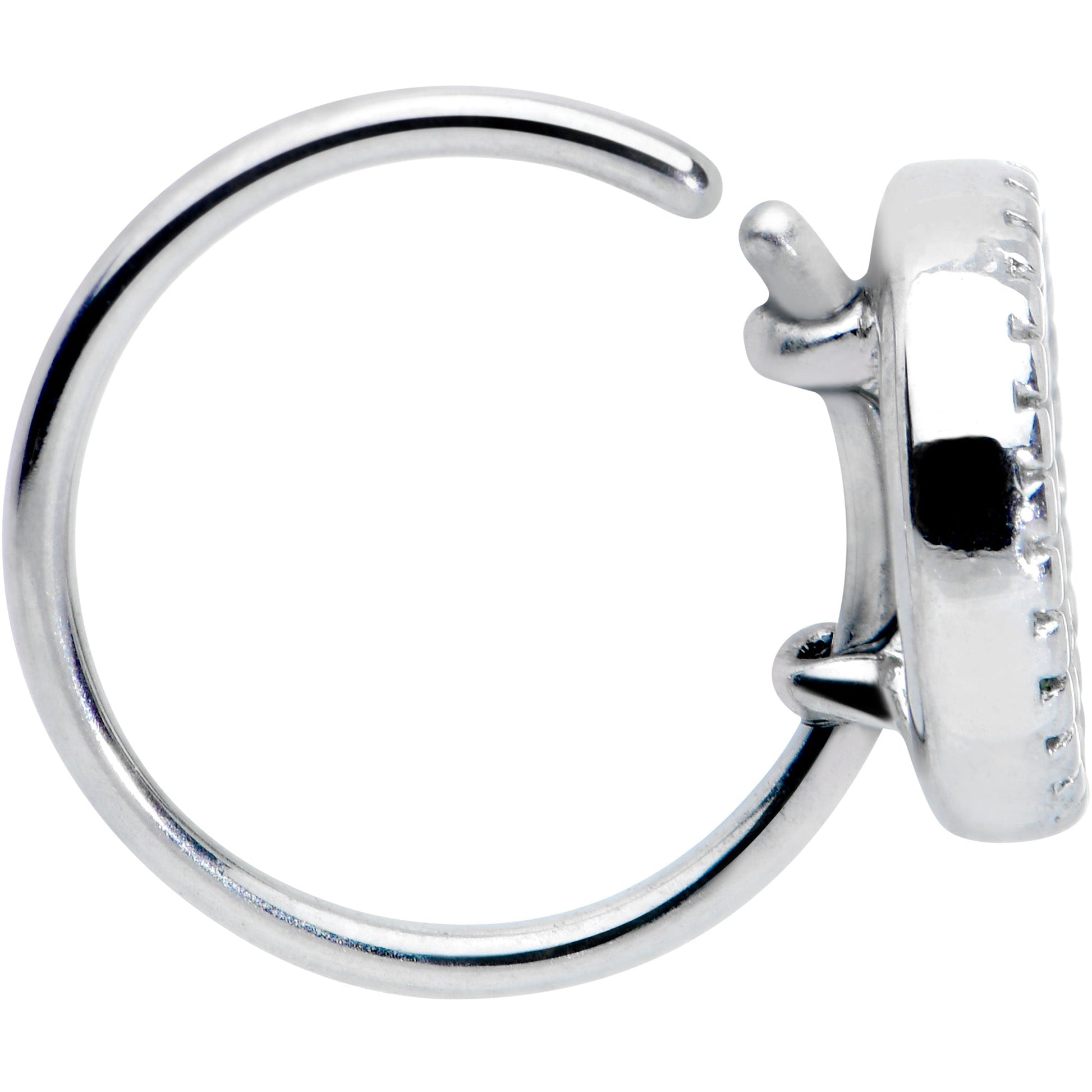 You're sure to love the luscious lunar look of this 20 gauge nostril ring! It's made with an 8mm 316L surgical grade stainless steel circular ring. It features an iridescent, multicolor crescent moon charm on the front which is completely rimmed with textured embellishment for an added touch of luxurious style. Let the moon stay out no matter what the hour, with this marvelous moon nose piercing jewelry!