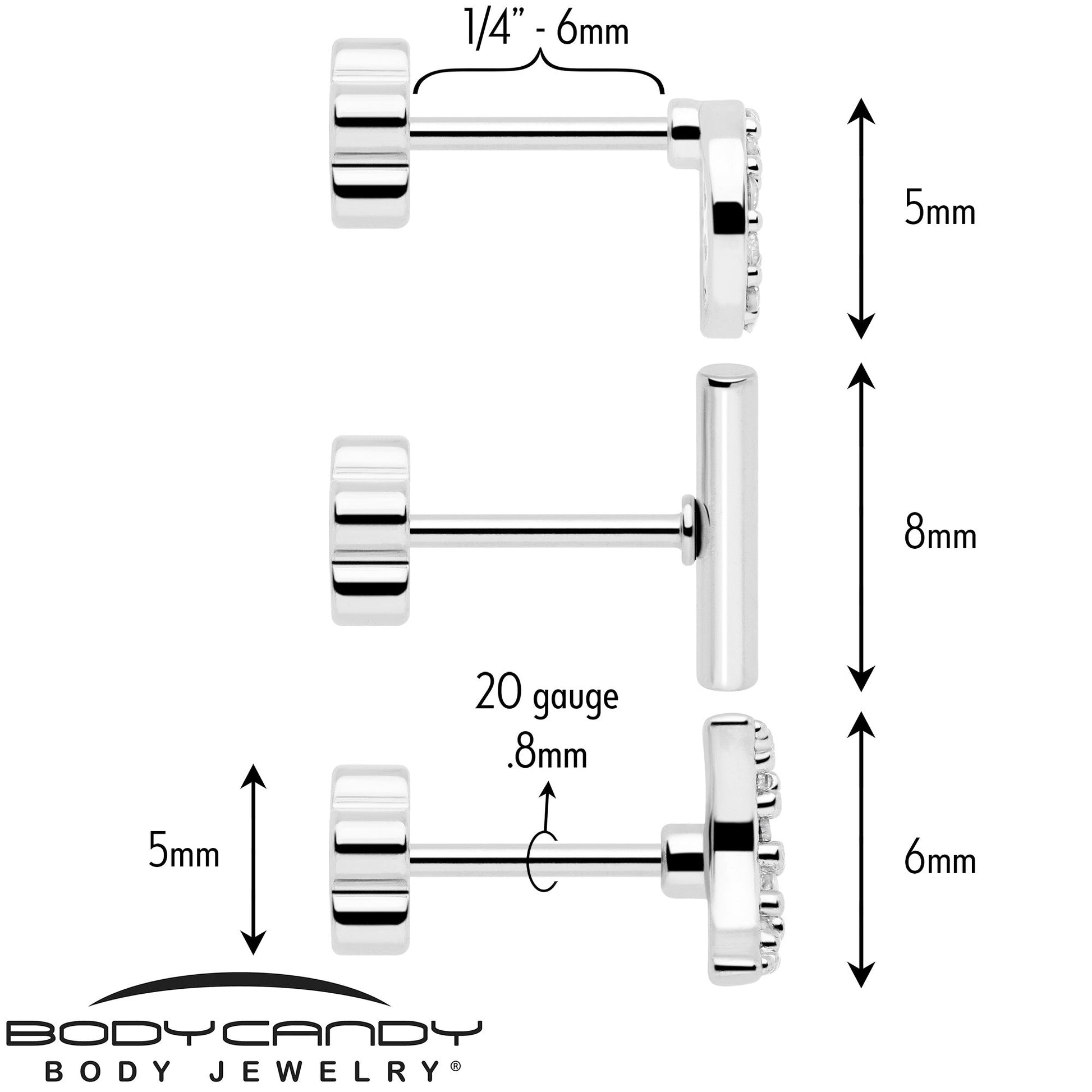 20 Gauge Clear CZ Gem Moon Circle Bar Reversible Flower Flat Back Earring Set of 6