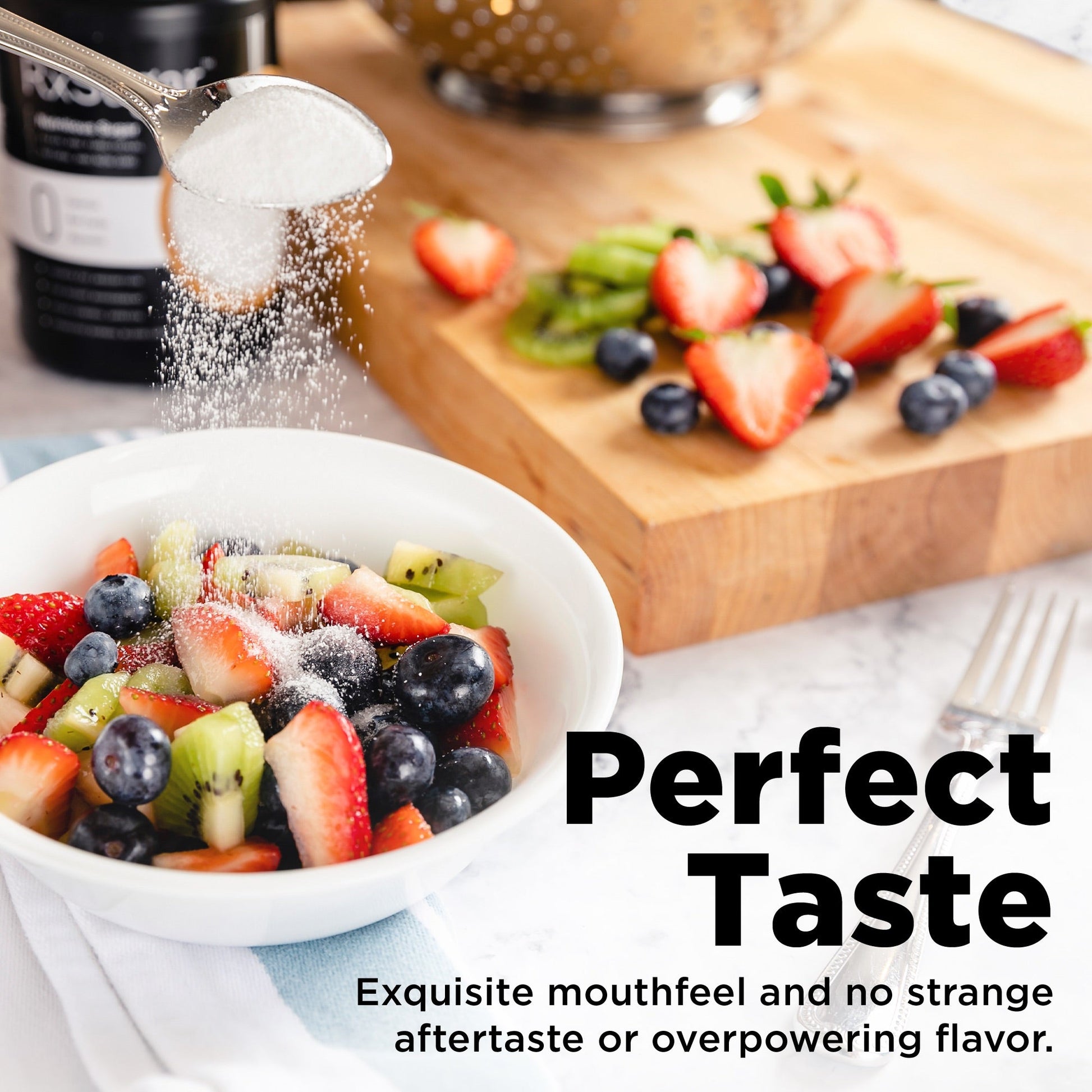 RxSugar® is made from Allulose Sugar, a low calorie plant-based sugar, is different from other sugars in that it is not metabolized by the human body in the same way as table sugar (sucrose). RxSugar® does not affect your blood sugar levels.