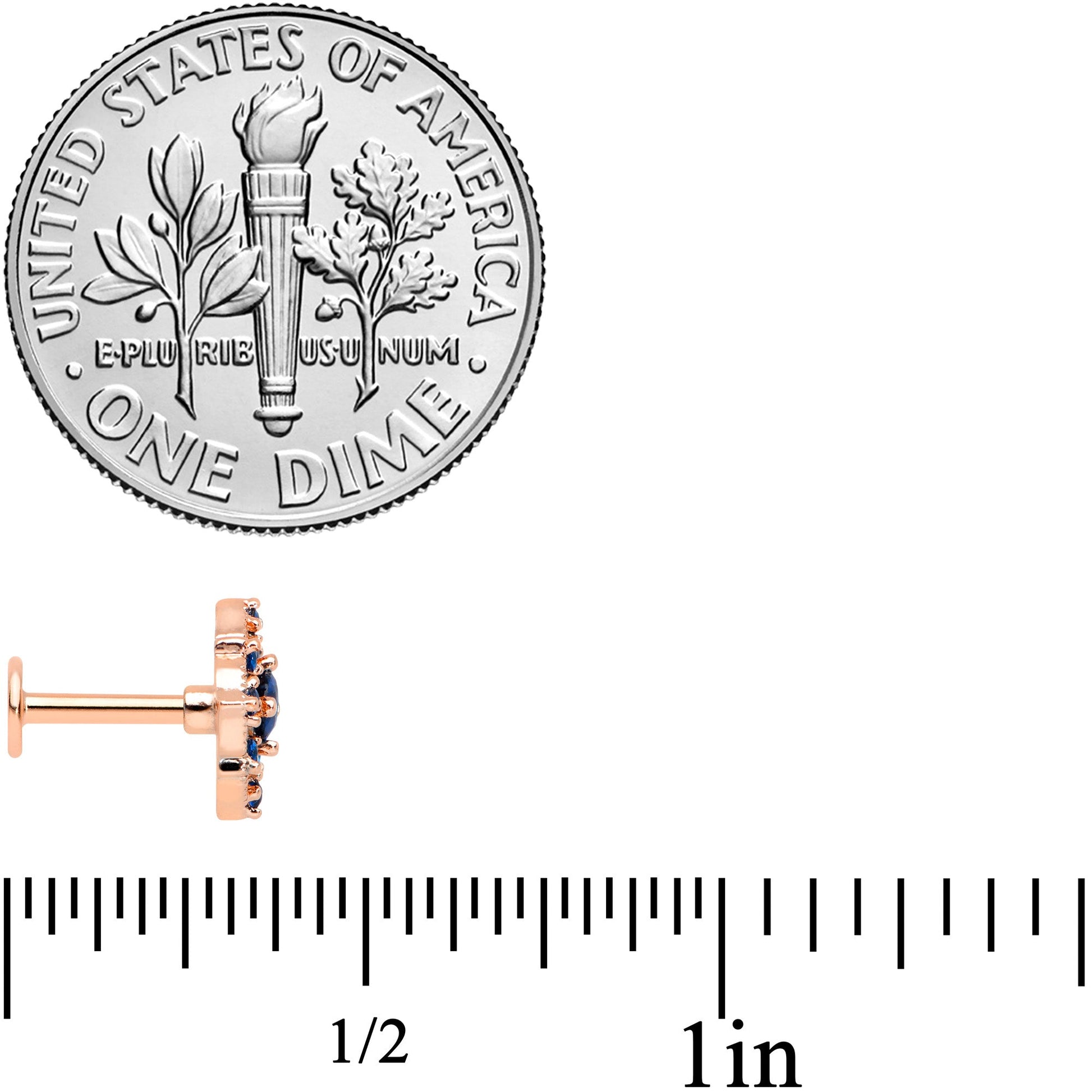 16 Gauge 1/4 Blue Gem Rose Gold Tone Night Star Labret Monroe Tragus