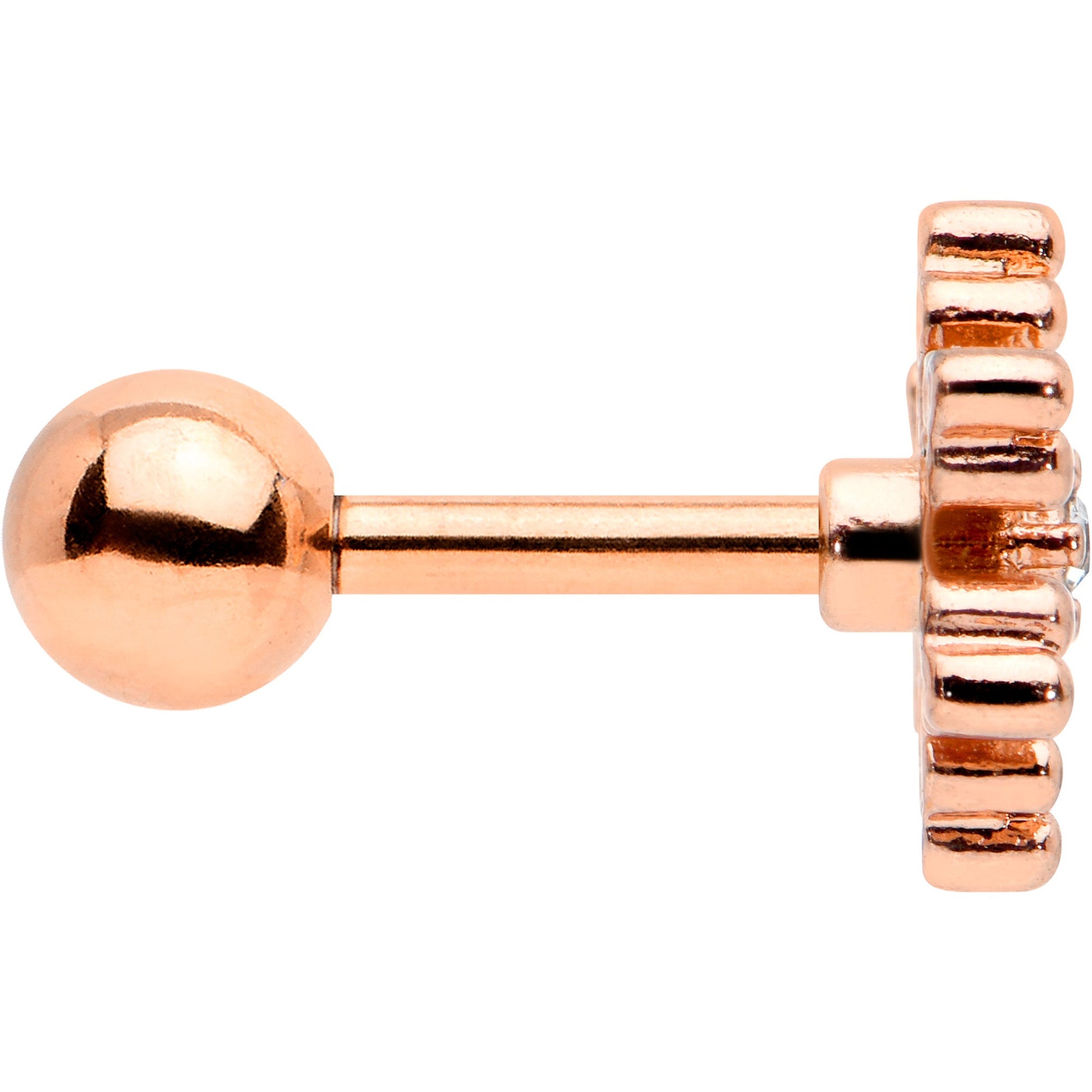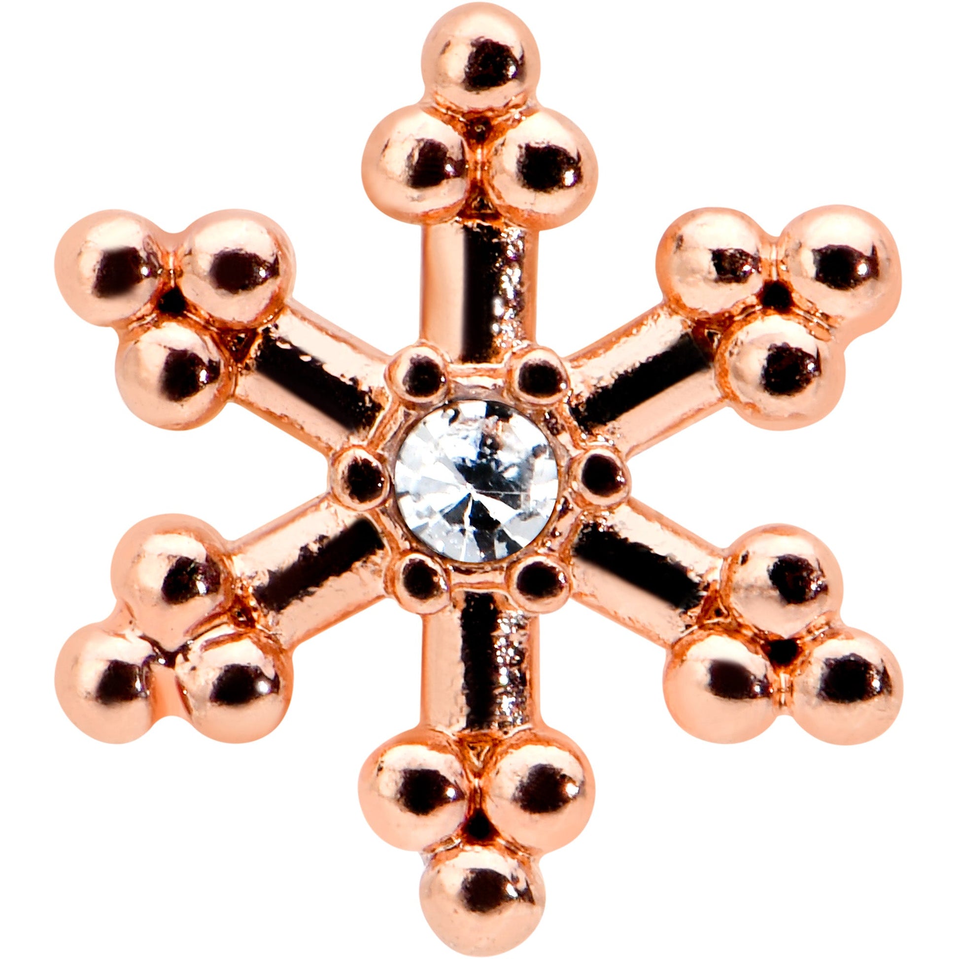 16 Gauge 1/4 Clear Gem Rose Gold Tone Pretty Snowflake Cartilage Tragus