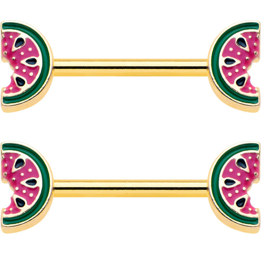 14G 9/16 Gold Tone Watermelon Bite Barbell Nipple Ring Set