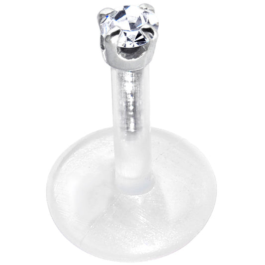 16G 1/4 Solid 14K White Gold 1.5mm CZ Bioplast Push in Cartilage Earring
