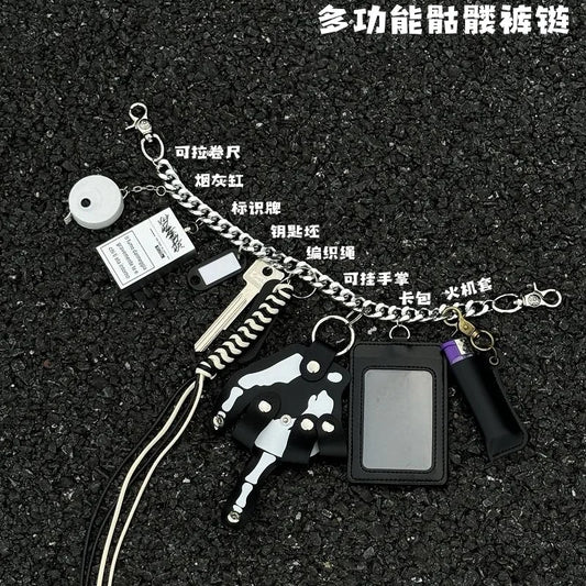“CHAIN OF THE DAMNED” Skeleton Palm Punk Pants Chain – Stage-Grade Multi-Hook Key Hanger & Waist Wrecker