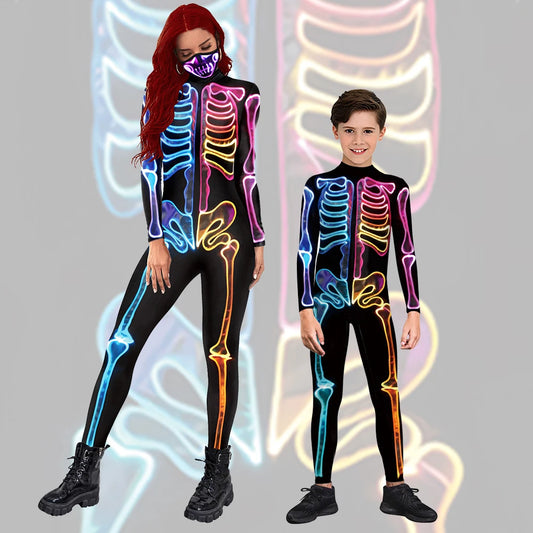 Skeleton 3D Printed Zombie Cosplay Zentai Jumpsuit – Unisex Halloween Carnival Costume Set for Adults & Children