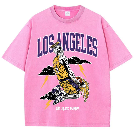Black Mamba Death Dunk ‘95 — Washed LA Skeleton Tee | Vintage Oversized Heavy Cotton Street Heat for Rebels & Rim-Shakers