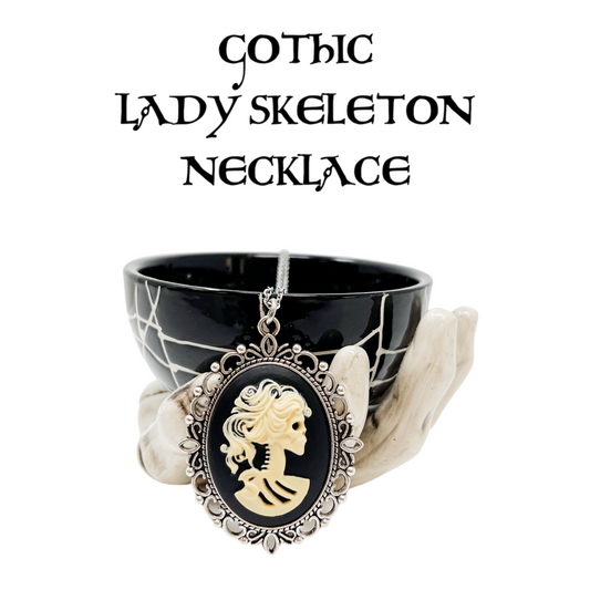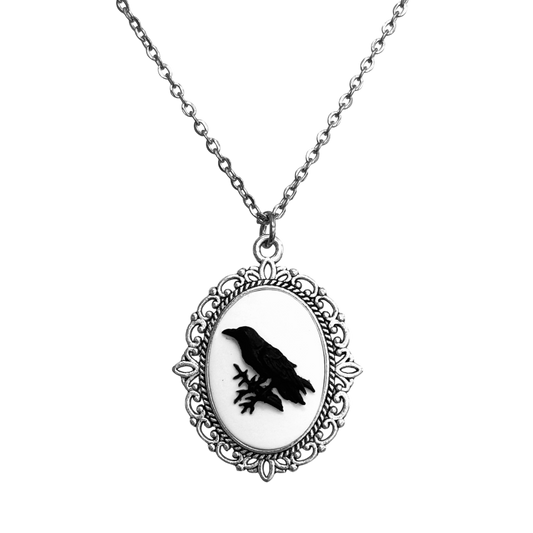 Gothic Lolita cameo pendant necklace crow skeleton black cat