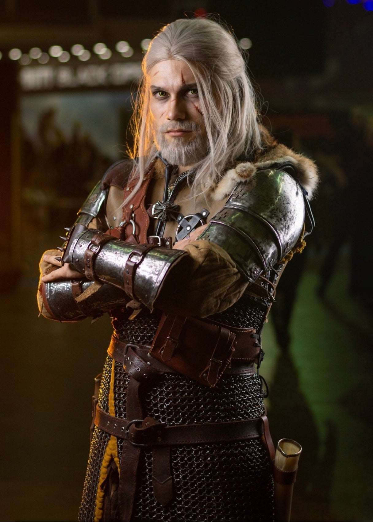 Vest made of thick genuine leather with a collar made of natural wolf fur. All accents and clasps are made of metal.