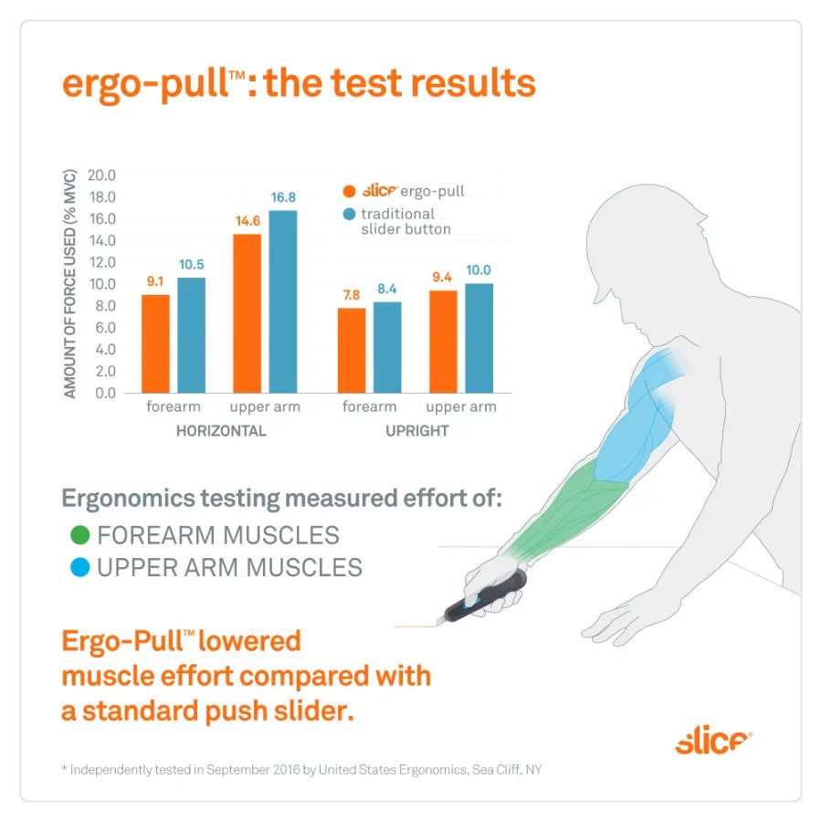 - Ergo Pull™ slider reduces hand strain