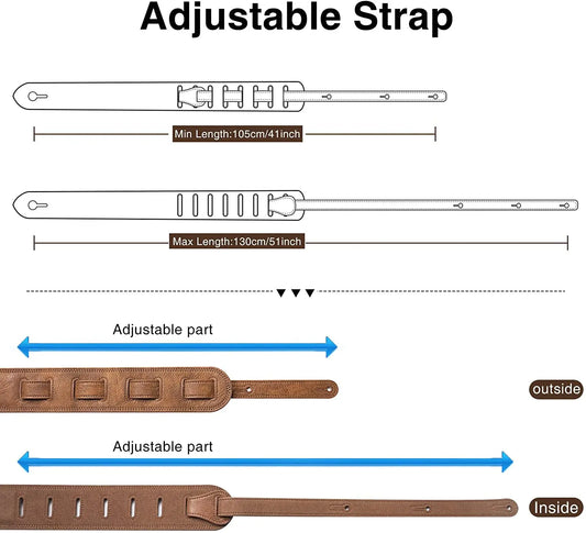 Lekato 2.5" Leather Guitar Strap – Heavy-Duty Padded Armor for Bass & Electric