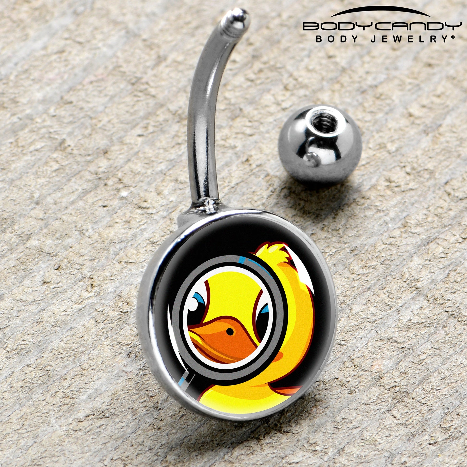 Hypoallergenic belly ring for sensitive skinMagnified Yellow Duck Belly Ring