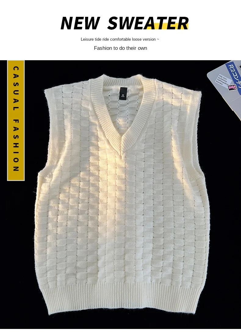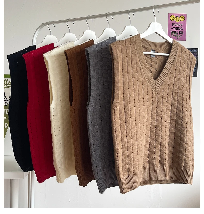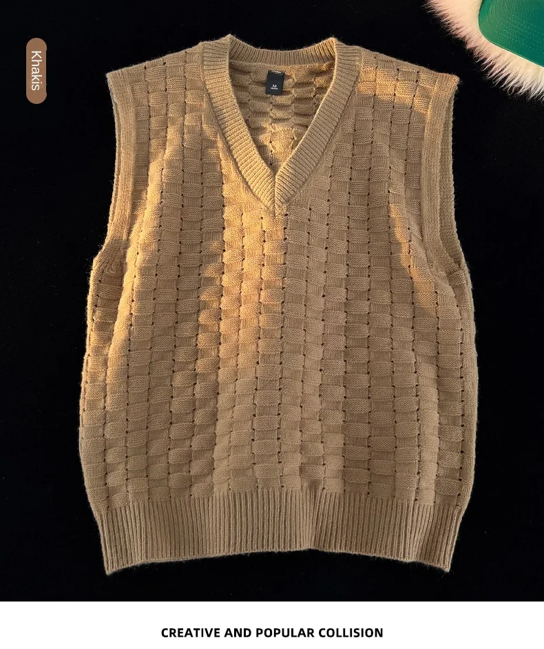 Vintage Knit Vest – Jacquard Check Pattern Sleeveless V-Neck Armor for Off-Stage Legends & Louder Lives