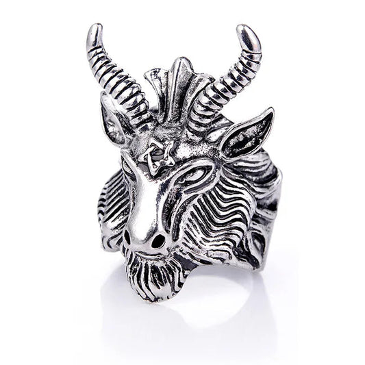 Retro Baphomet Sigil Ring – Large Punk Gothic Rock Open Ring for Men | Handmade Designer Biker Jewelry Gift