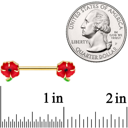 14G 9/16 Gold Tone Field of Poppies Barbell Nipple Ring Set