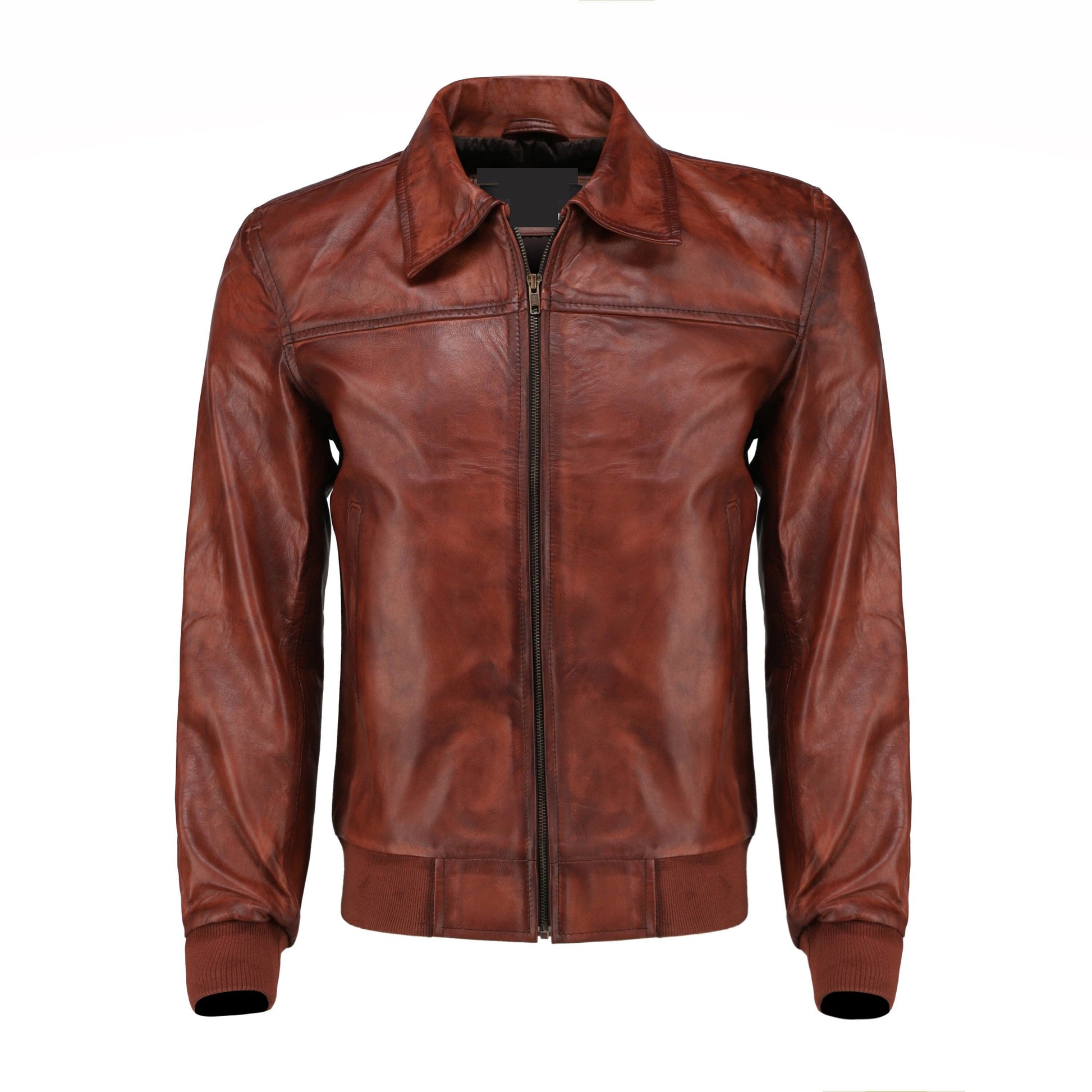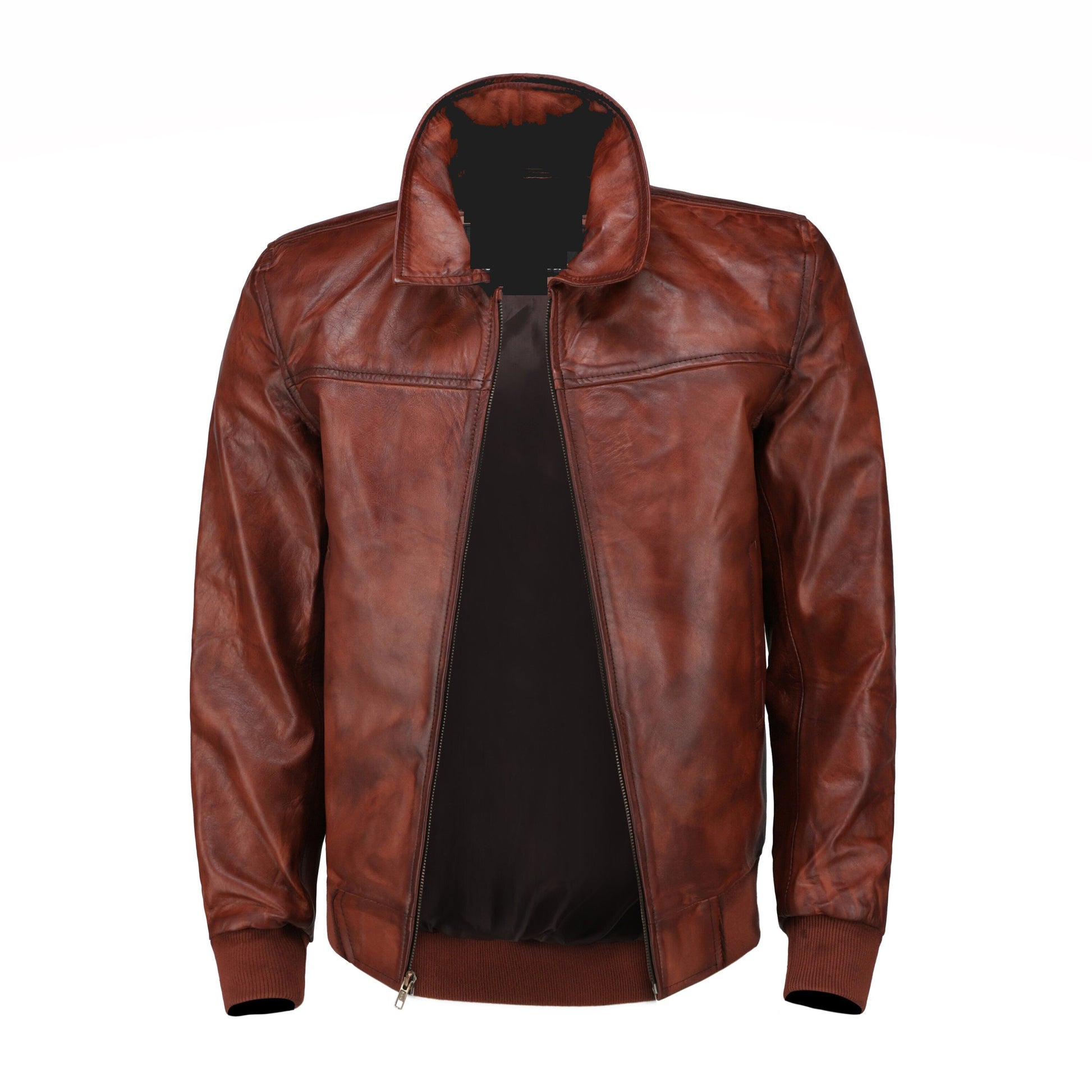 Handmade Boyd's Brown Leather Jacket With Ribbed Cuffs