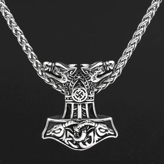 Vikings Raven Thor's Hammer Stainless Steel Necklace