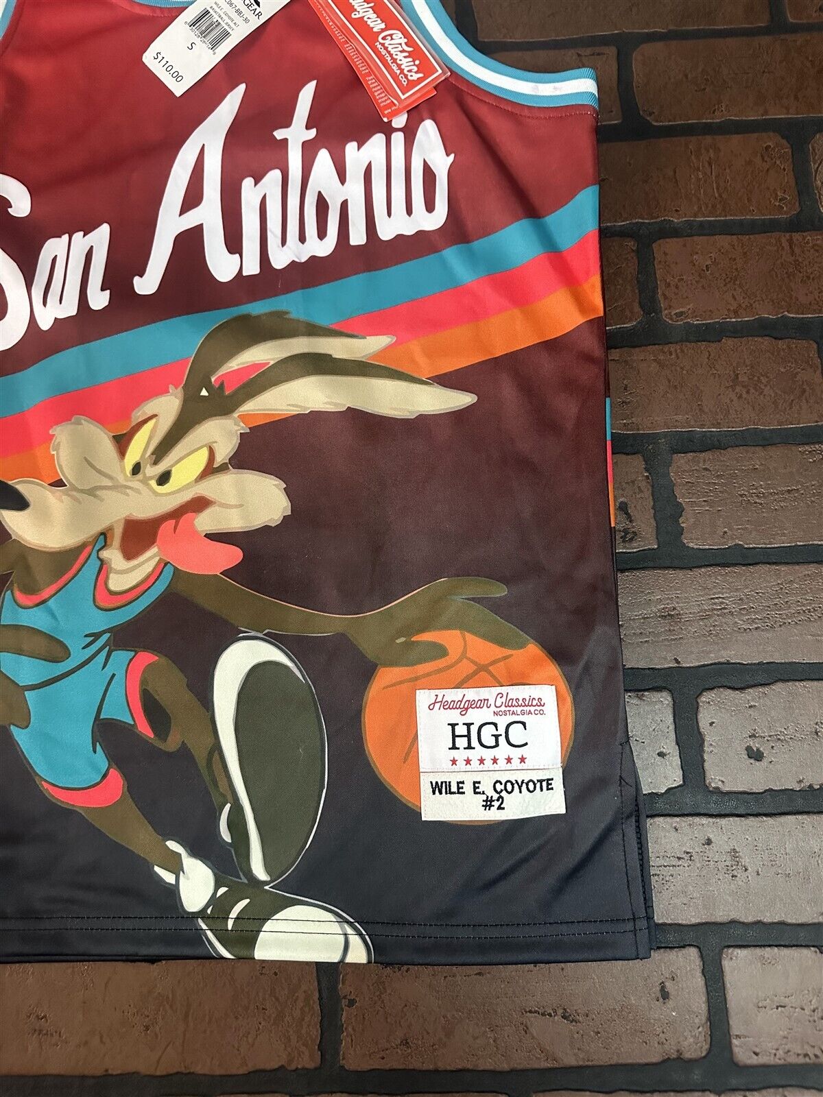 WILE E COYOTE/SAN ANTONIO Red Headgear Classics Basketball Jersey ~New~ S M XL