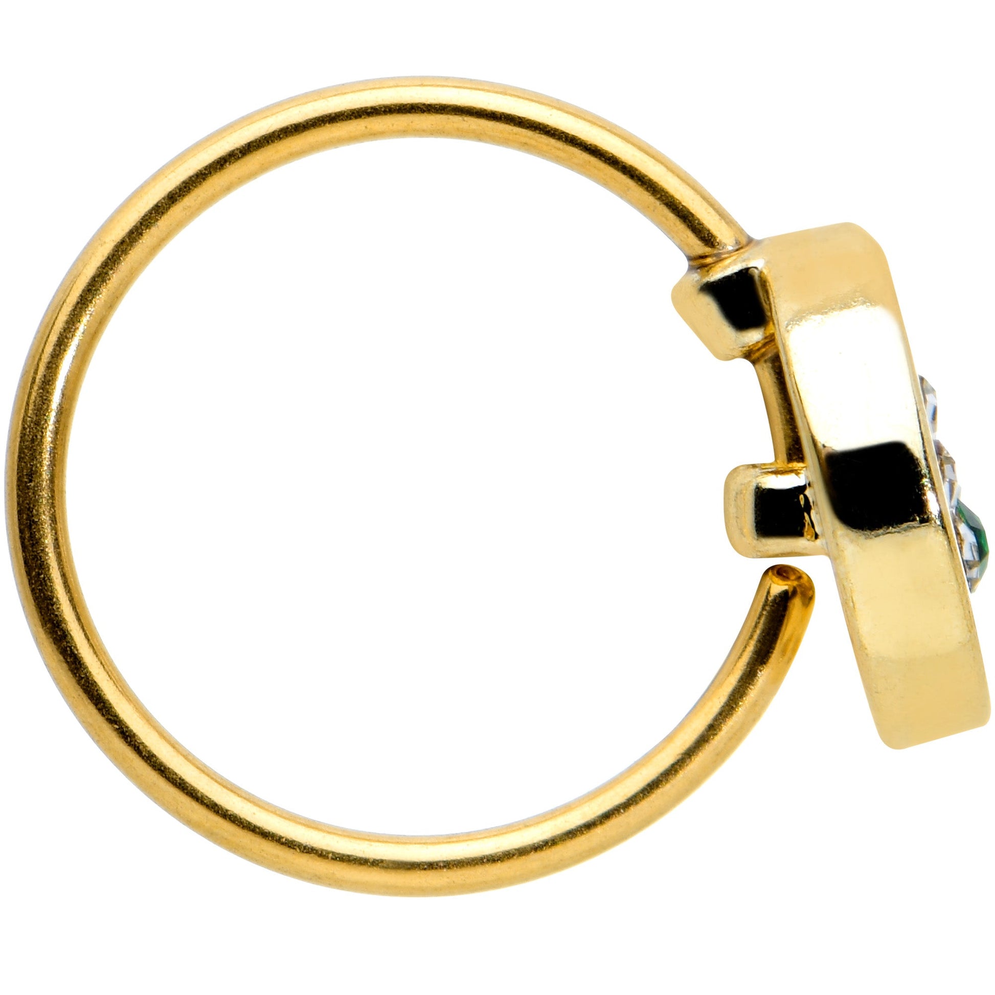 20G 5/16 Green Gem Gold Tone Pot Leaf Circle Nose Hoop